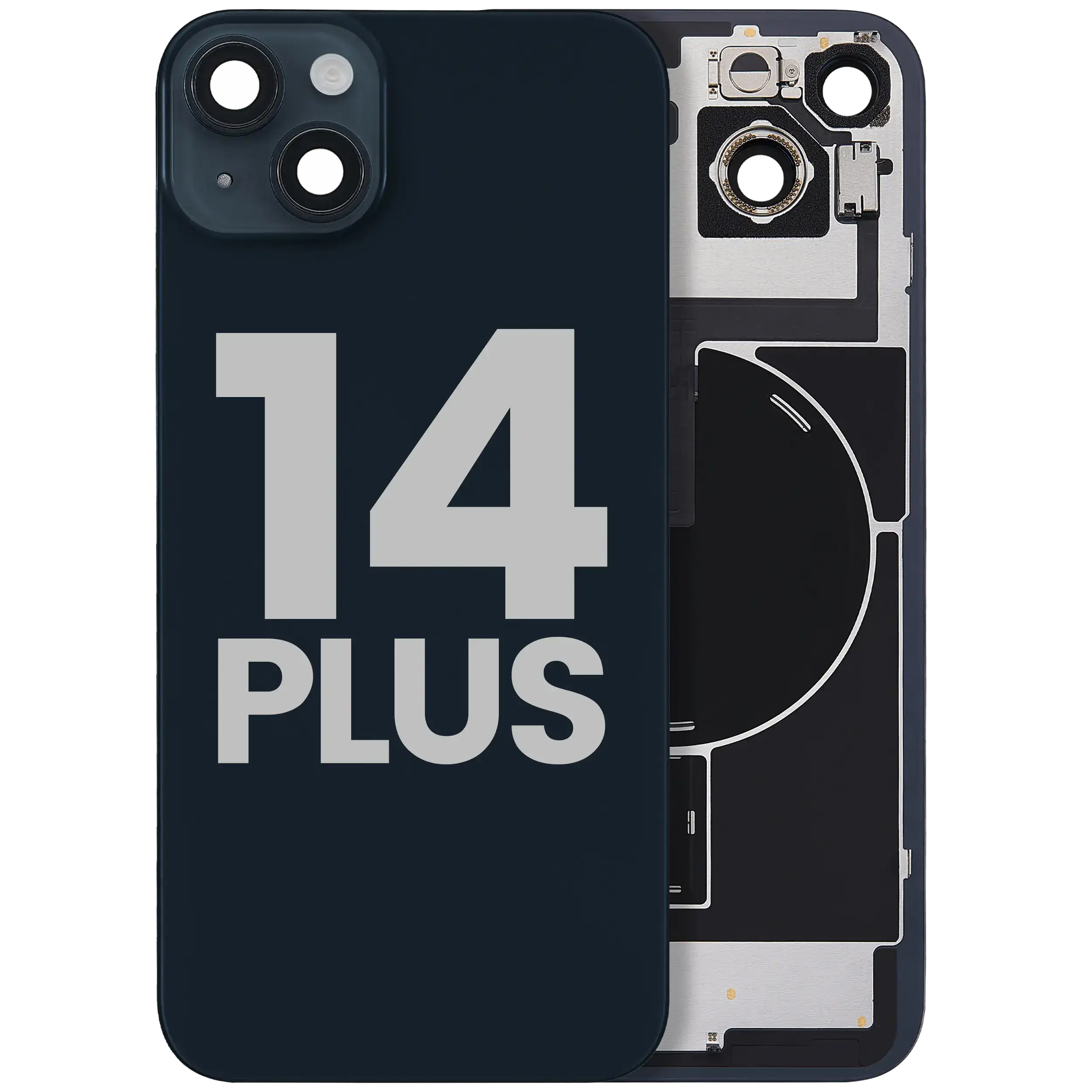 Back Glass w/ MagSafe Magnet & NFC & Flashlight Flex iPhone 14 Plus (Quality - OEM Pull C) (Midnight)
