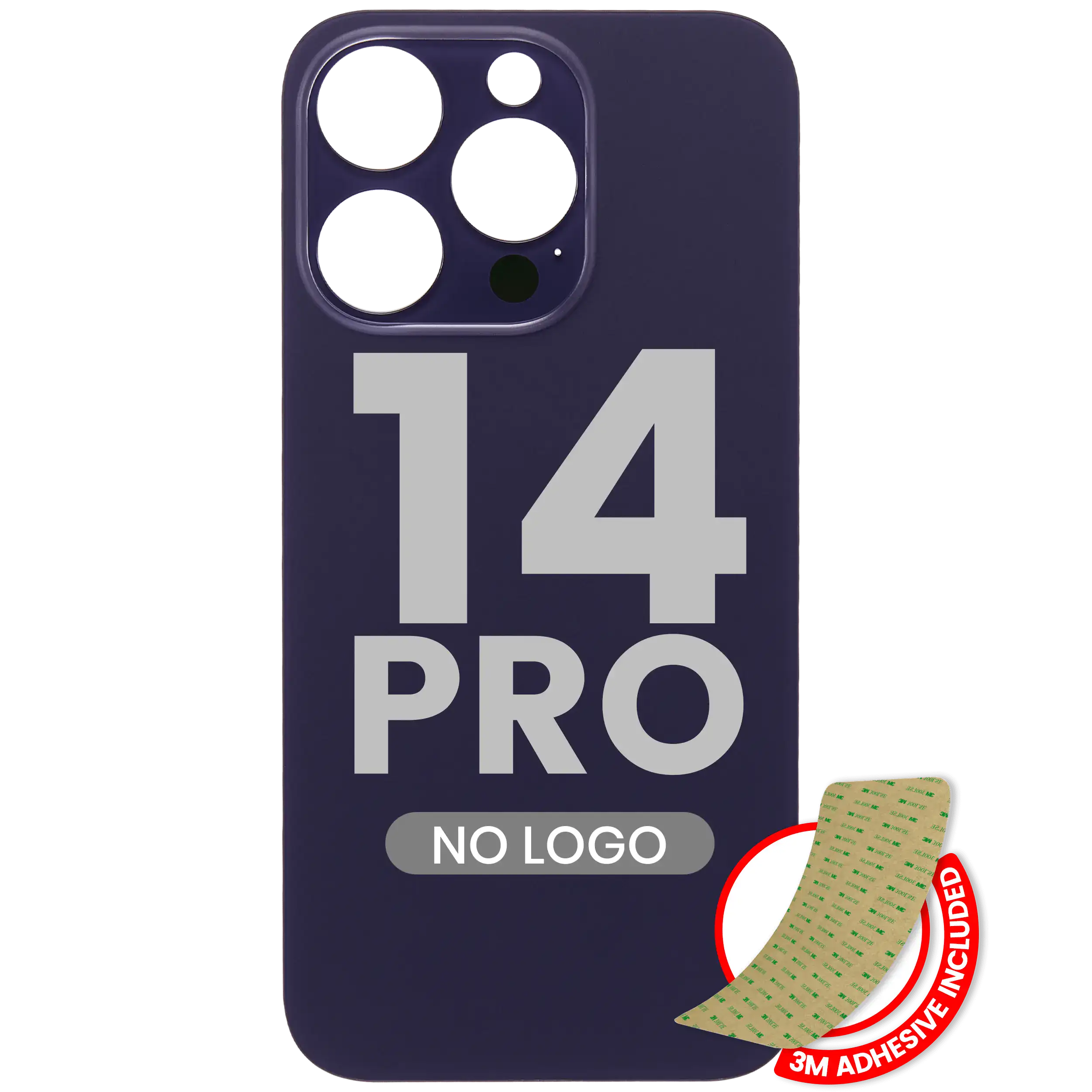 • High quality, Back Glass with 3M adhesive for iPhone 14 Pro (No Logo / Large Camera Hole) (Deep Purple).