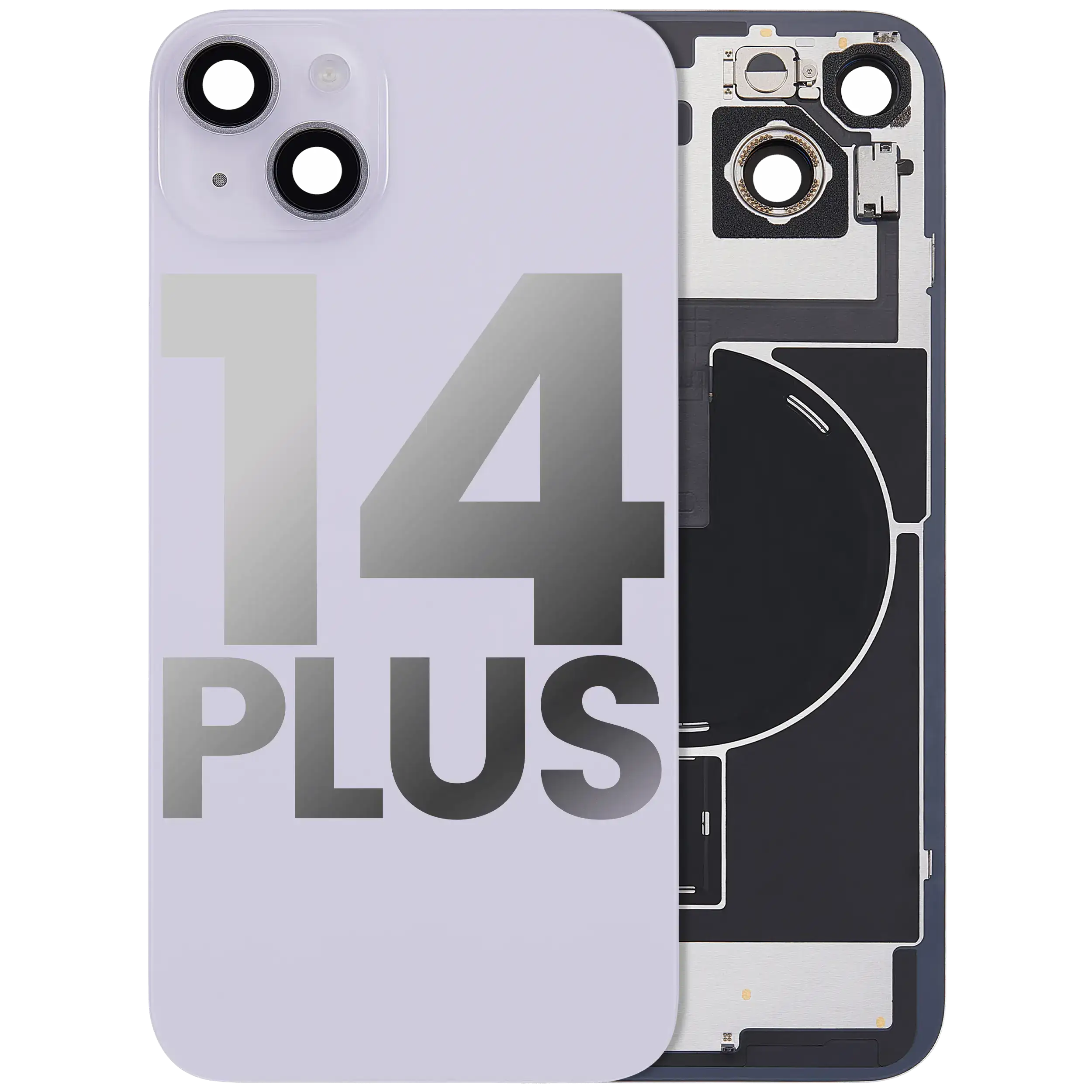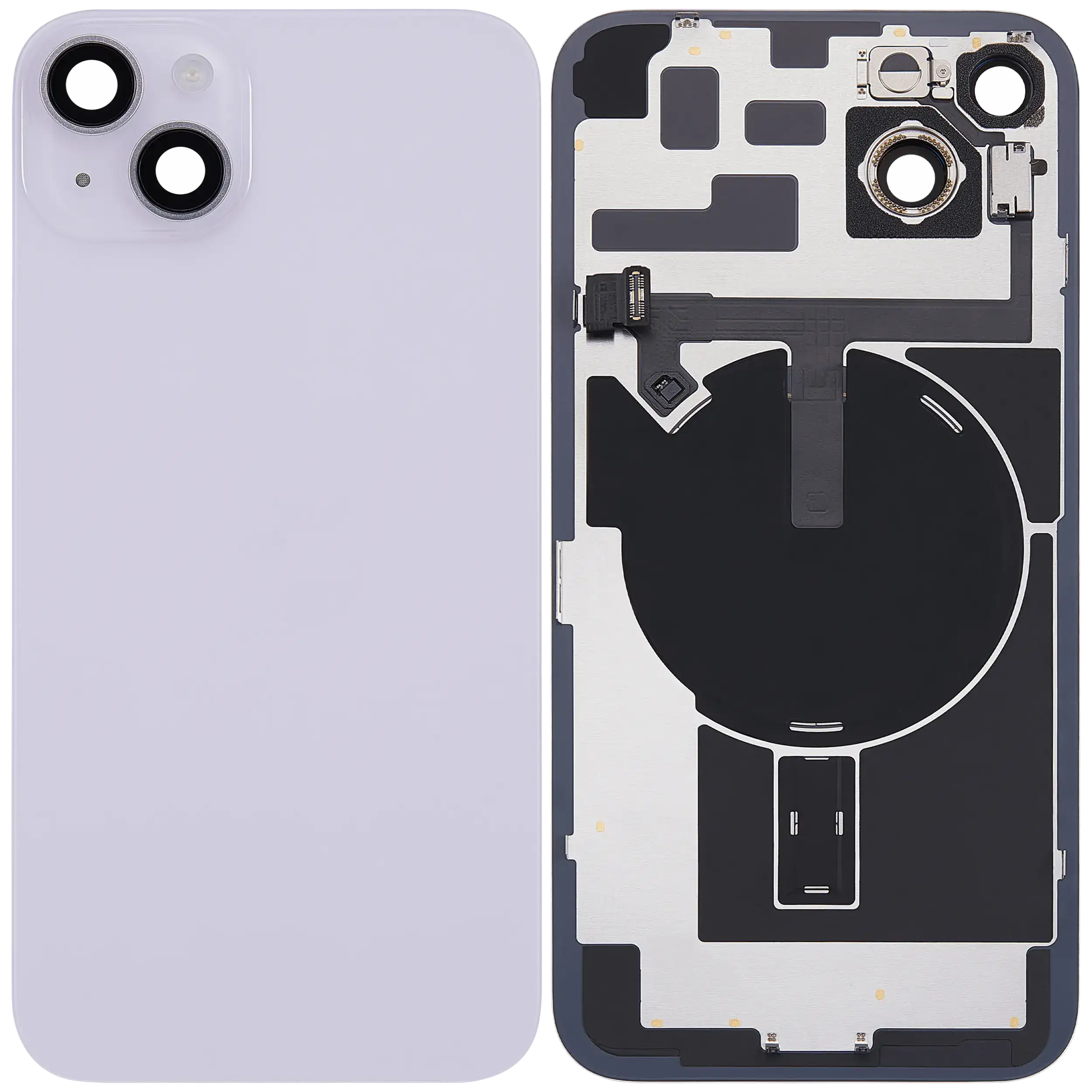Back Glass With Steel Plate With Wireless NFC Charging MagSafe Magnet & Flashlight Flex iPhone 14 Plus (Used OEM Pull: Grade B) (Purple)
