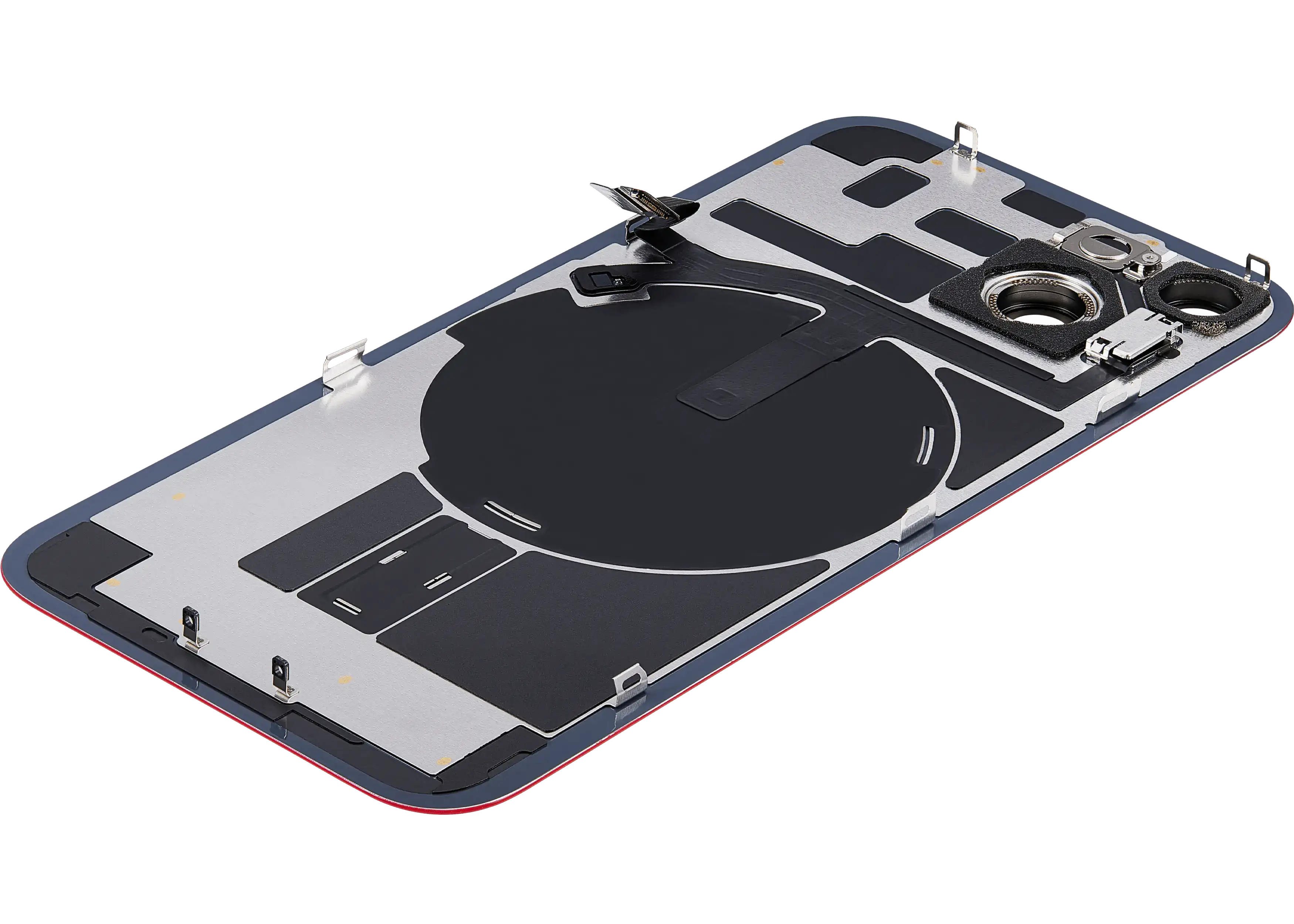 Back Glass With Steel Plate With Wireless NFC Charging MagSafe Magnet & Flashlight Flex iPhone 14 (Used OEM Pull: Grade B) (Red)