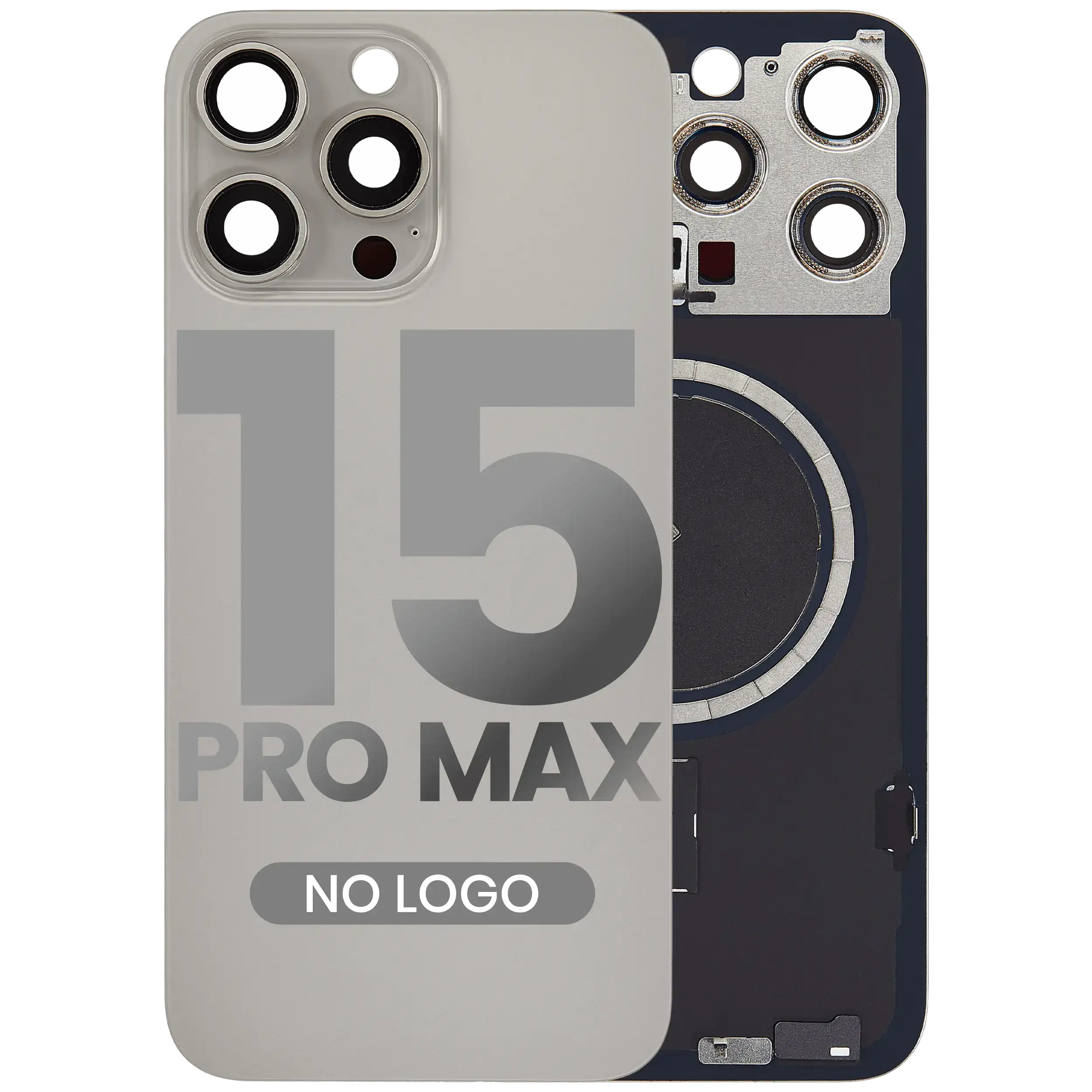 Back Glass With Steel Plate With MagSafe Magnet Pre-Installed iPhone 15 Pro Max (No Logo) (Natural Titanium)