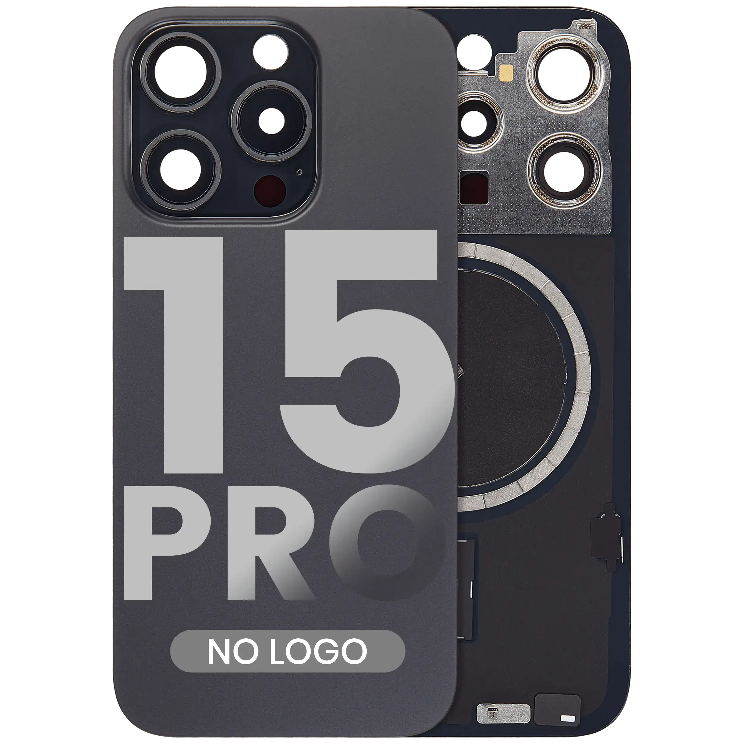 Back Glass With Steel Plate With MagSafe Magnet Pre-Installed iPhone 15 Pro (No Logo) (Black Titanium)