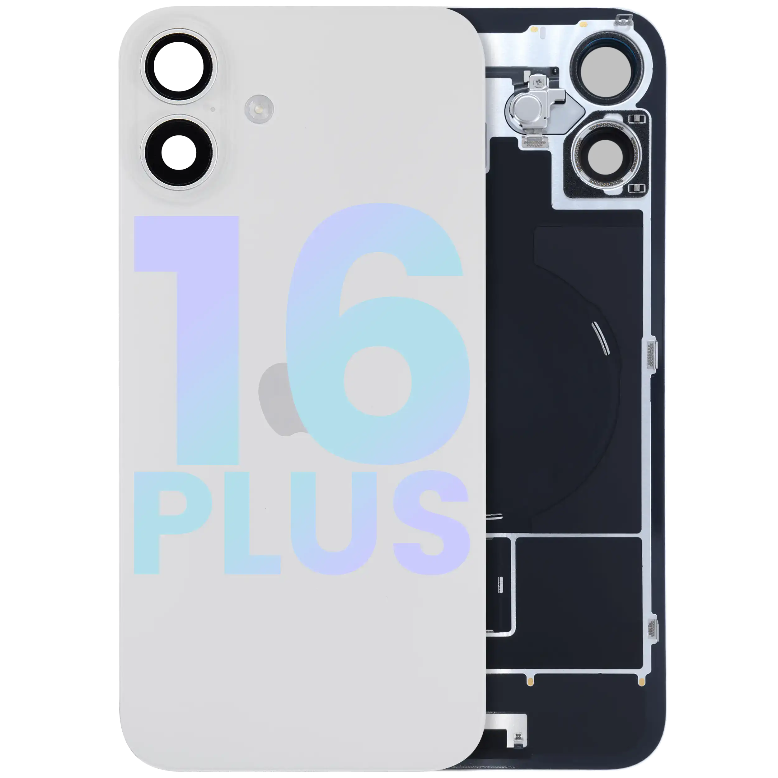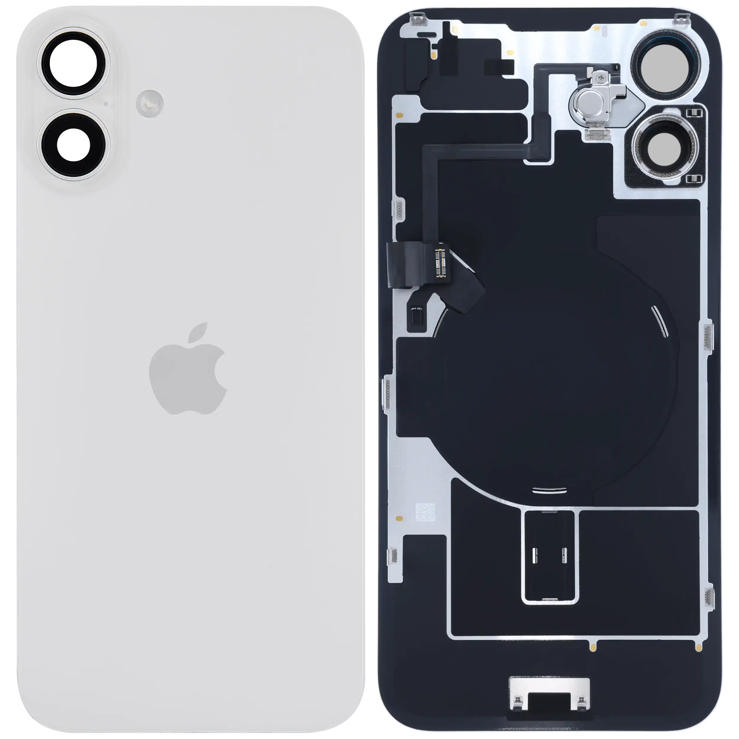 Back Glass With Steel Plate With Wireless NFC Charging MagSafe Magnet & Flashlight Flex IPhone 16 Plus (Genuine OEM) (White)