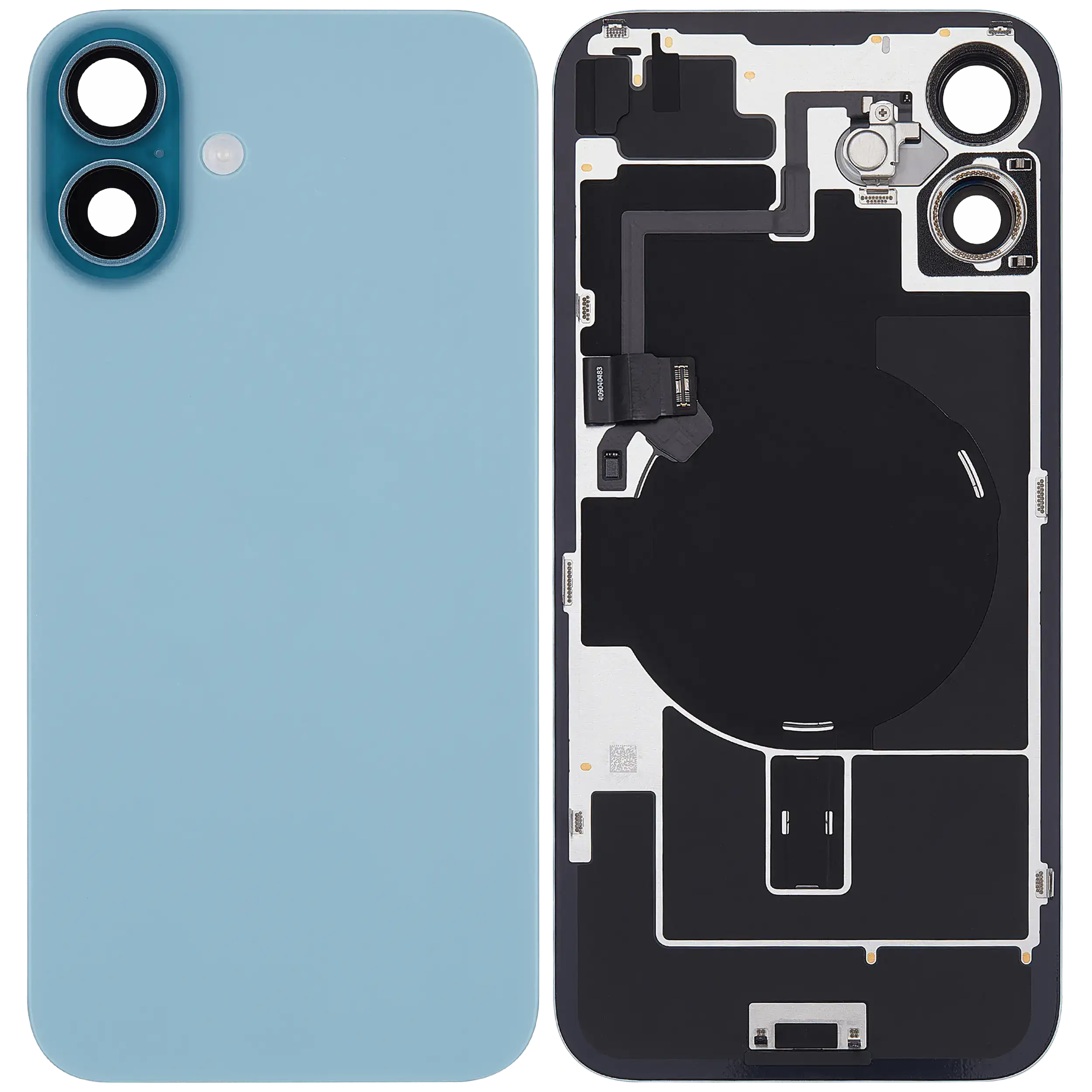 Back Glass With Steel Plate With Wireless NFC Charging MagSafe Magnet & Flashlight Flex iPhone 16 Plus (Used OEM Pull: Grade A) (Teal)
