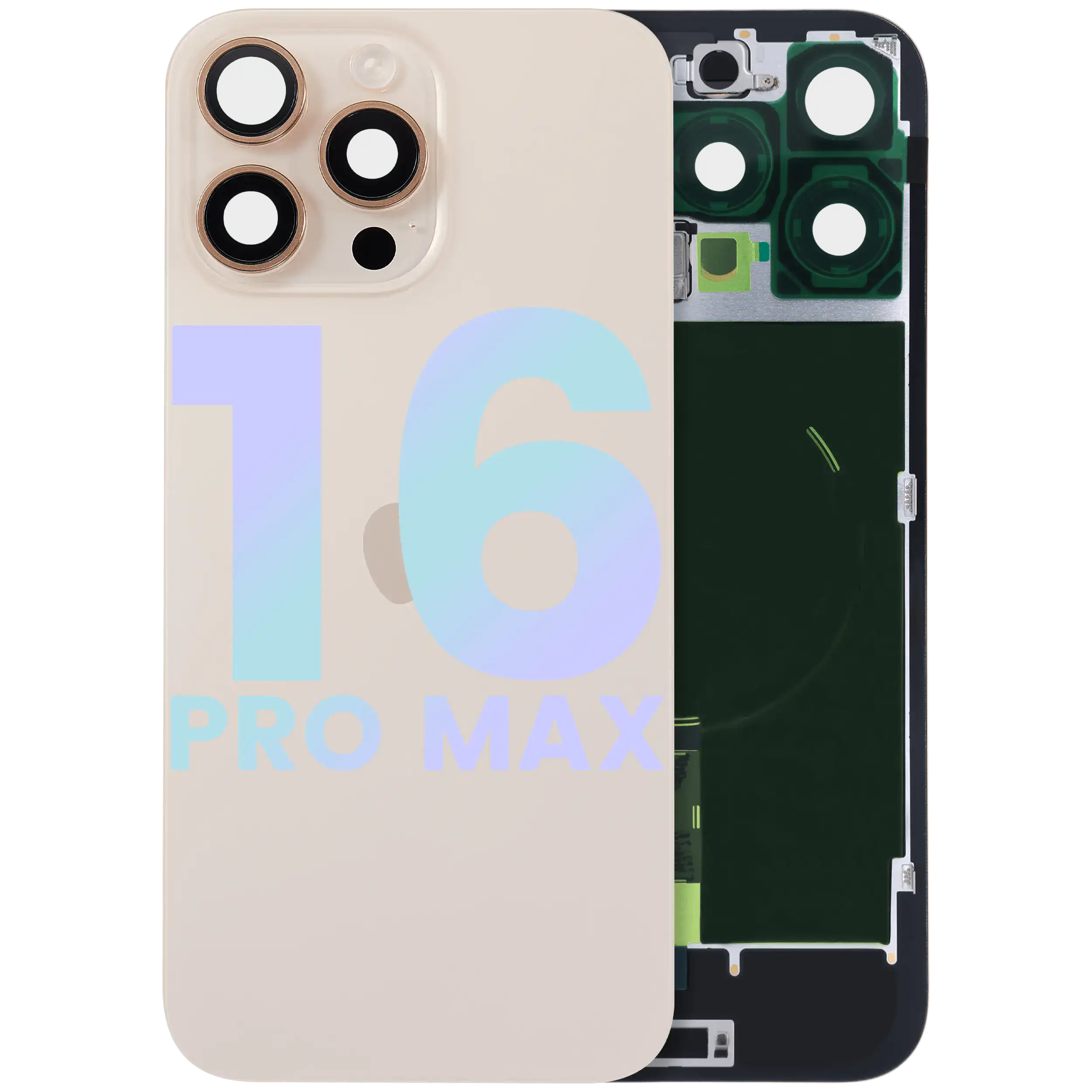 Back Glass With Steel Plate With Wireless NFC Charging MagSafe Magnet & Flashlight Flex IPhone 16 Pro Max (Genuine OEM) (Desert Titanium)