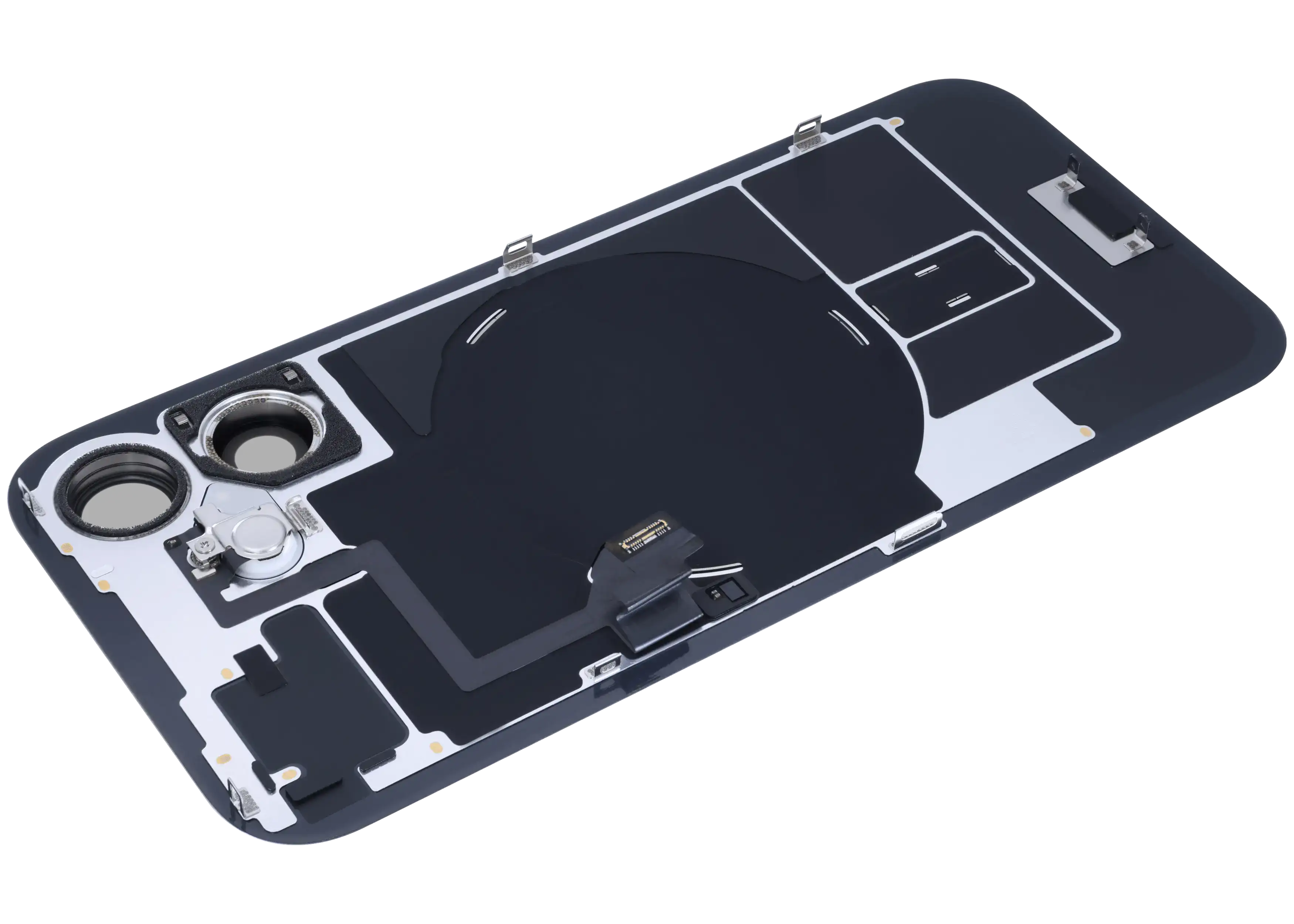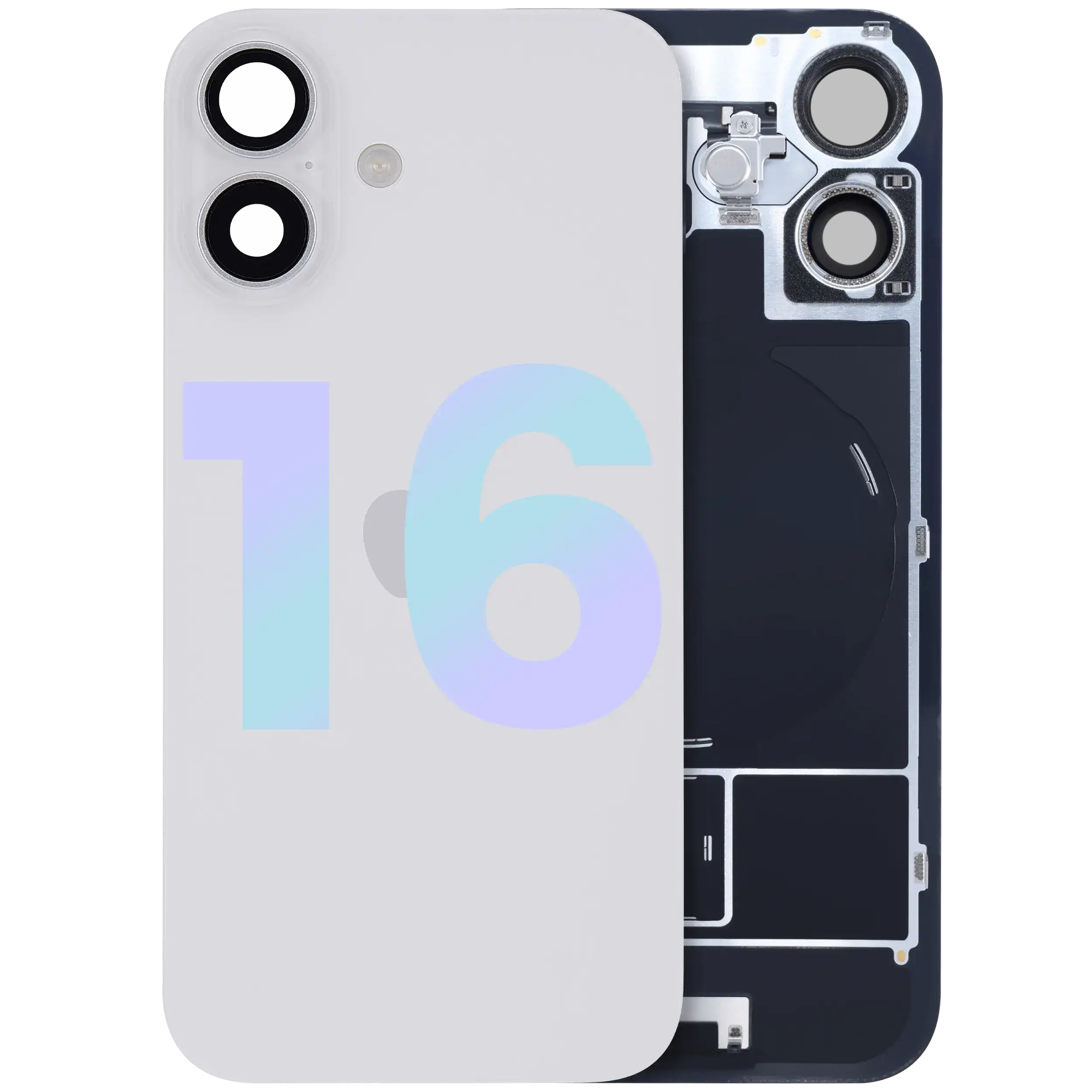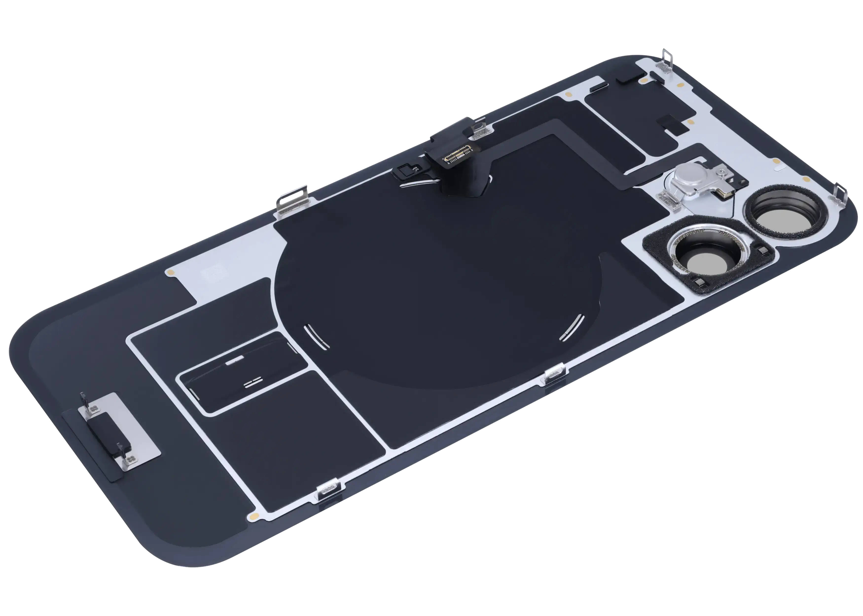 Back Glass With Steel Plate With Wireless NFC Charging MagSafe Magnet & Flashlight Flex iPhone 16 (Genuine OEM) (White)