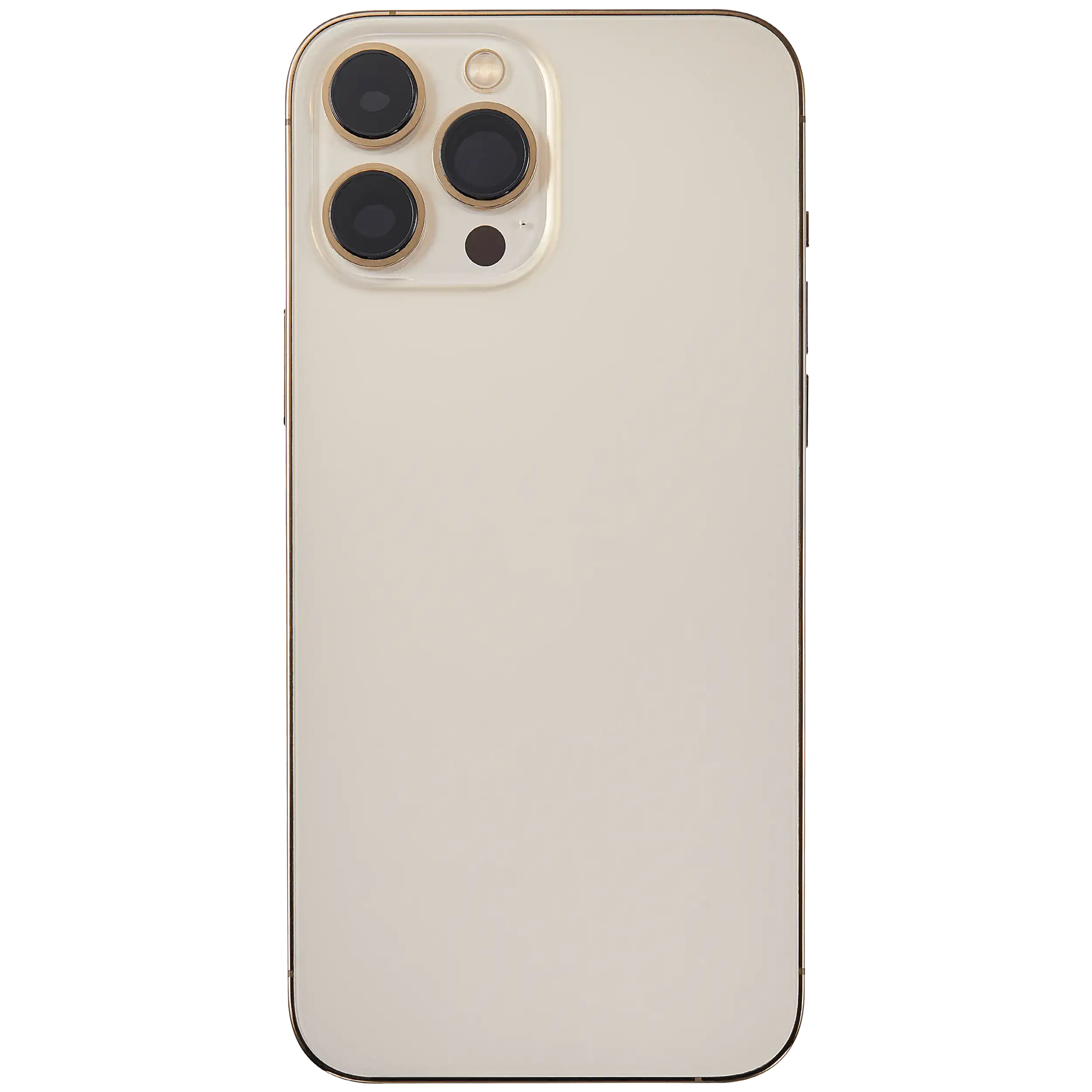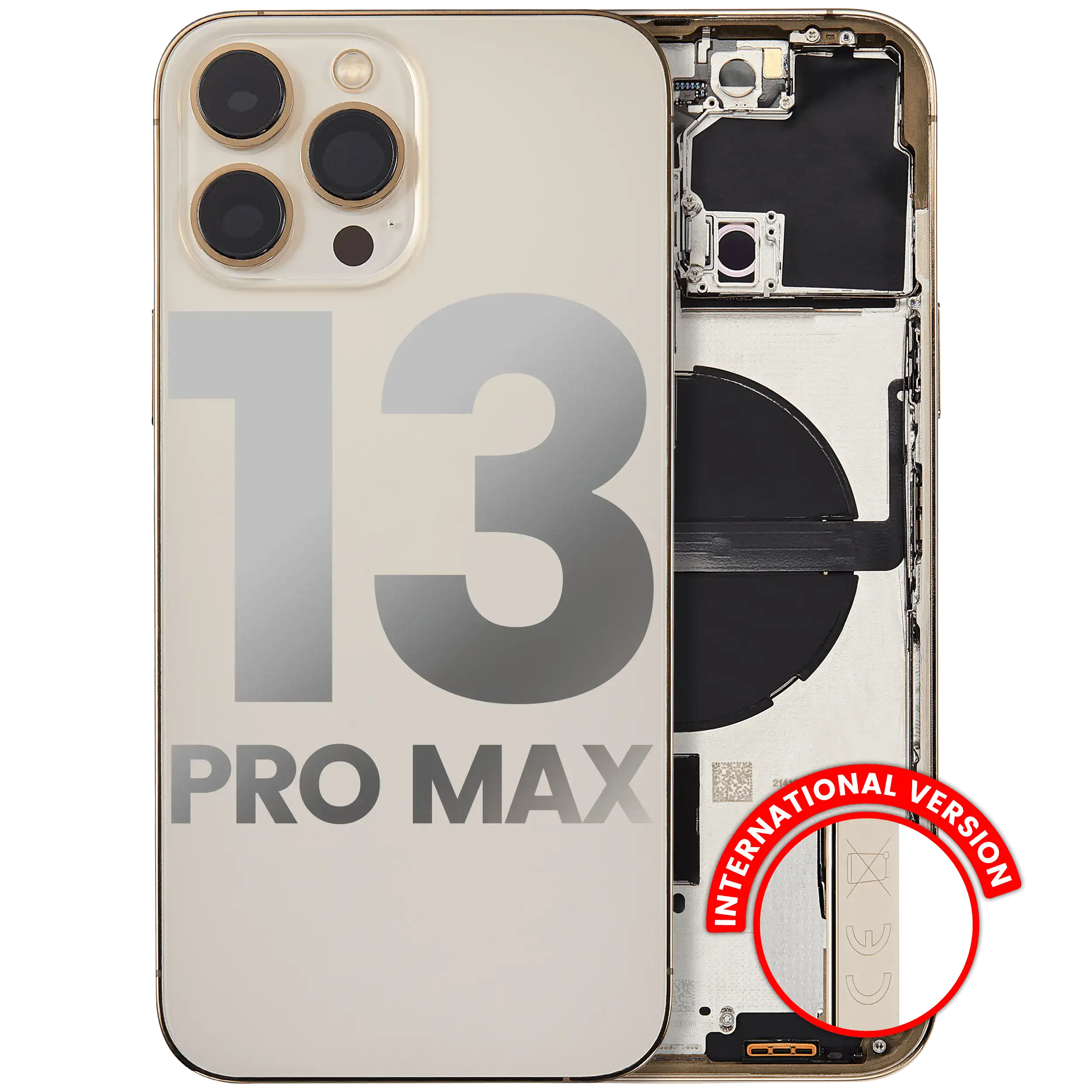 • Used OEM Pull Back Housing W/ Small Components Pre-Installed for iPhone 13 Pro Max (International Version) (Used OEM Pull: Grade B) (Gold).