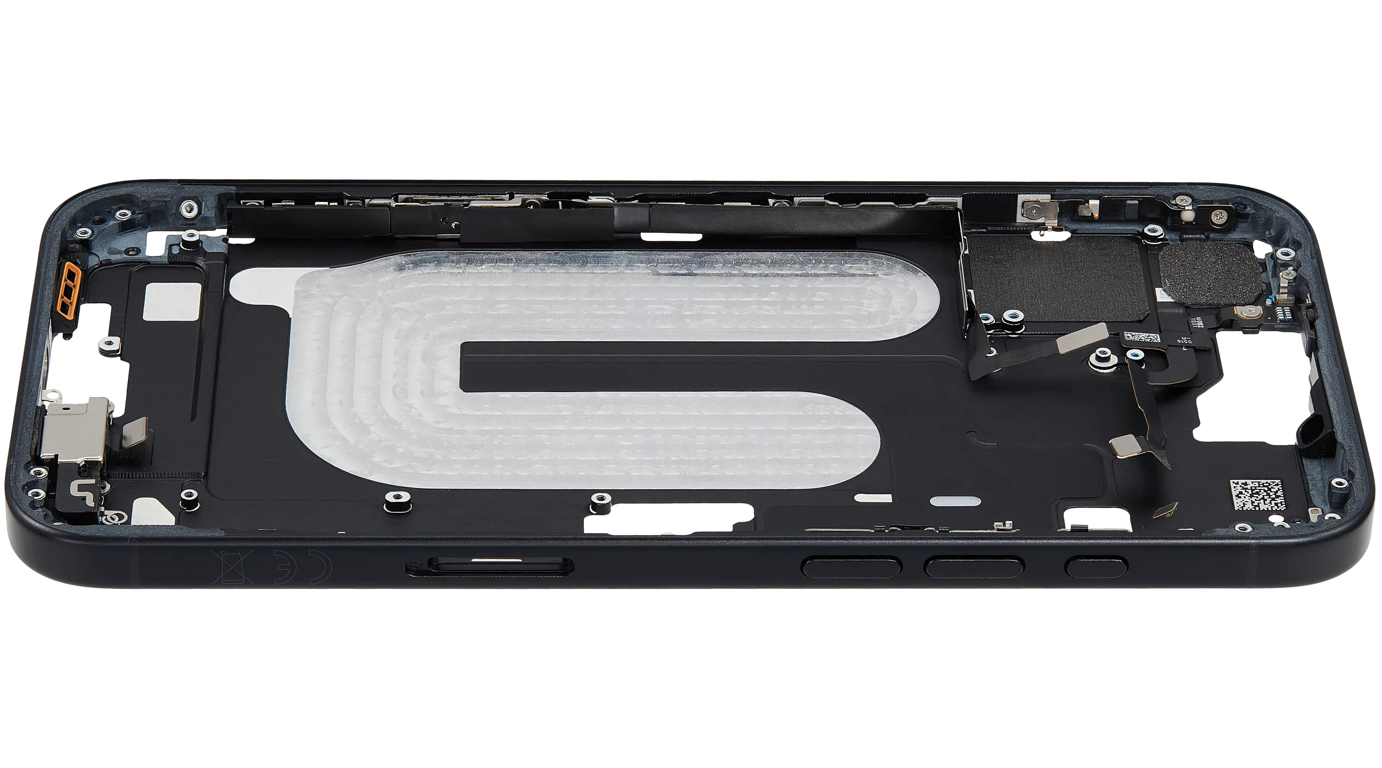 Mid-Frame Housing W/ Small Parts For iPhone 16 Plus (EU / Global Version) (Used OEM Pull: Grade C) (Black)