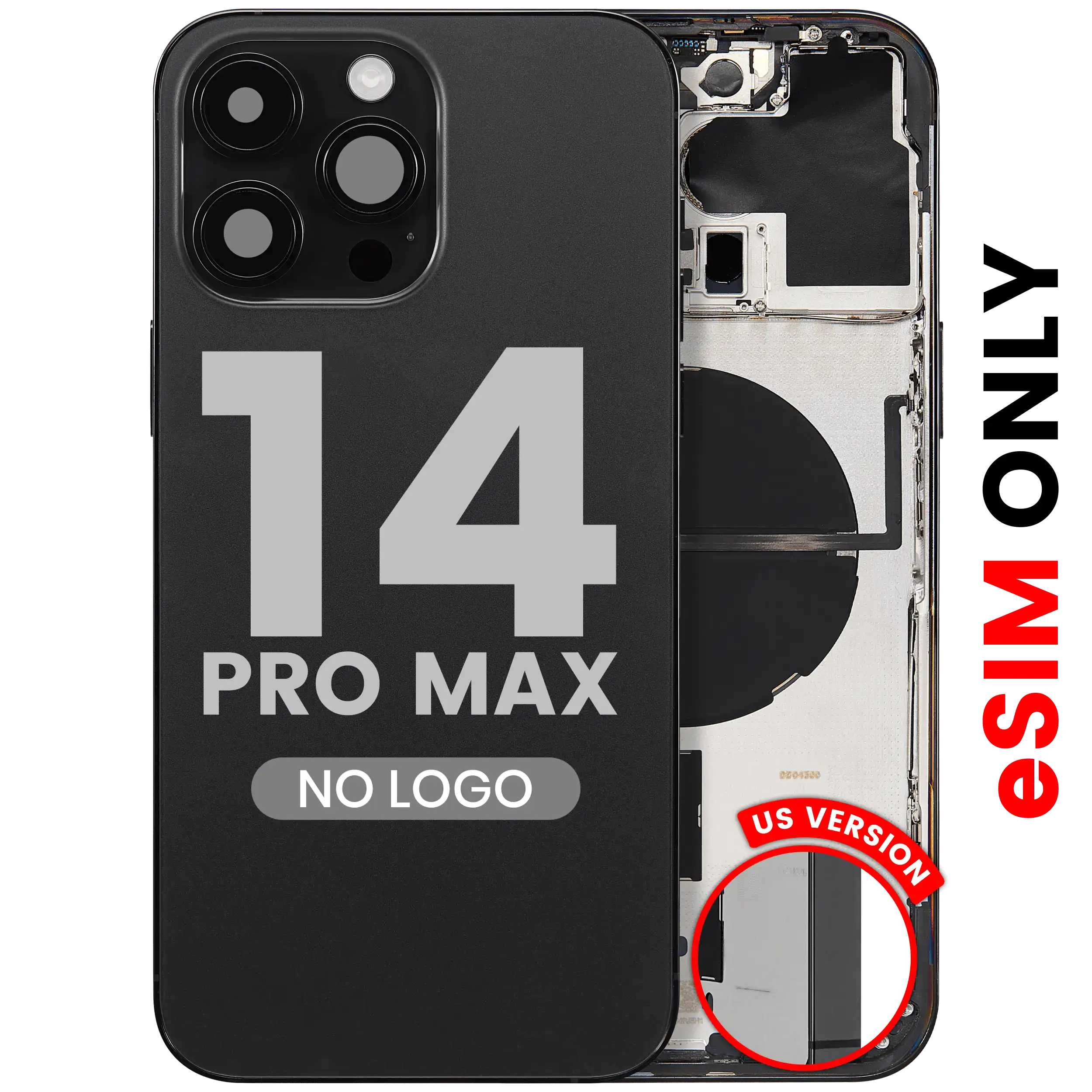 • High quality Back housing for iPhone 14 Pro Max w/ small components pre-installed (U.S Version) (No Logo) (Aftermarket Plus) (Space Black).