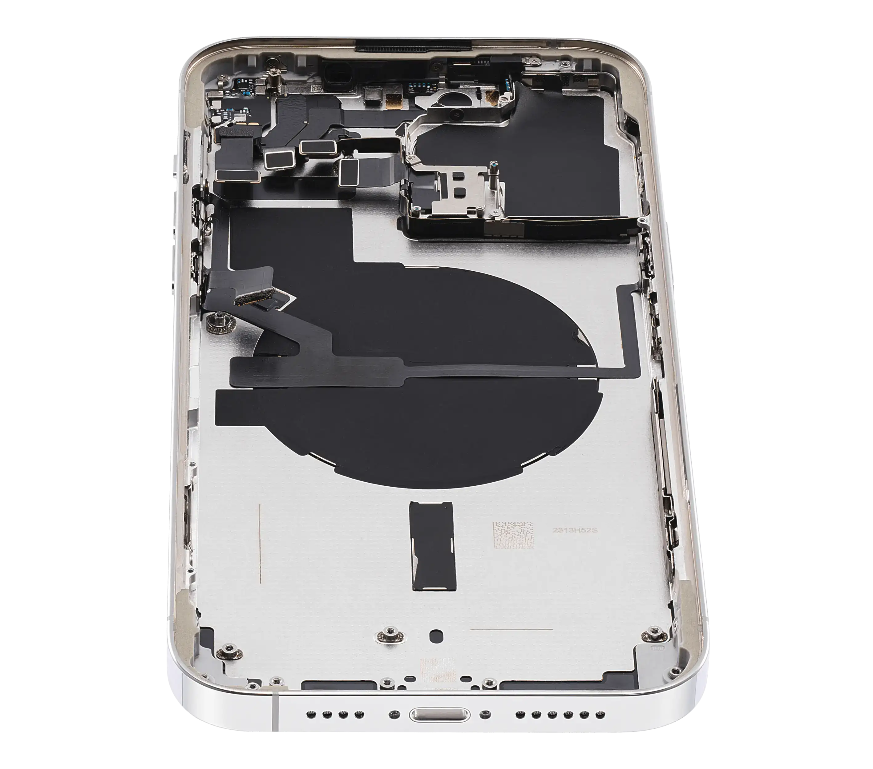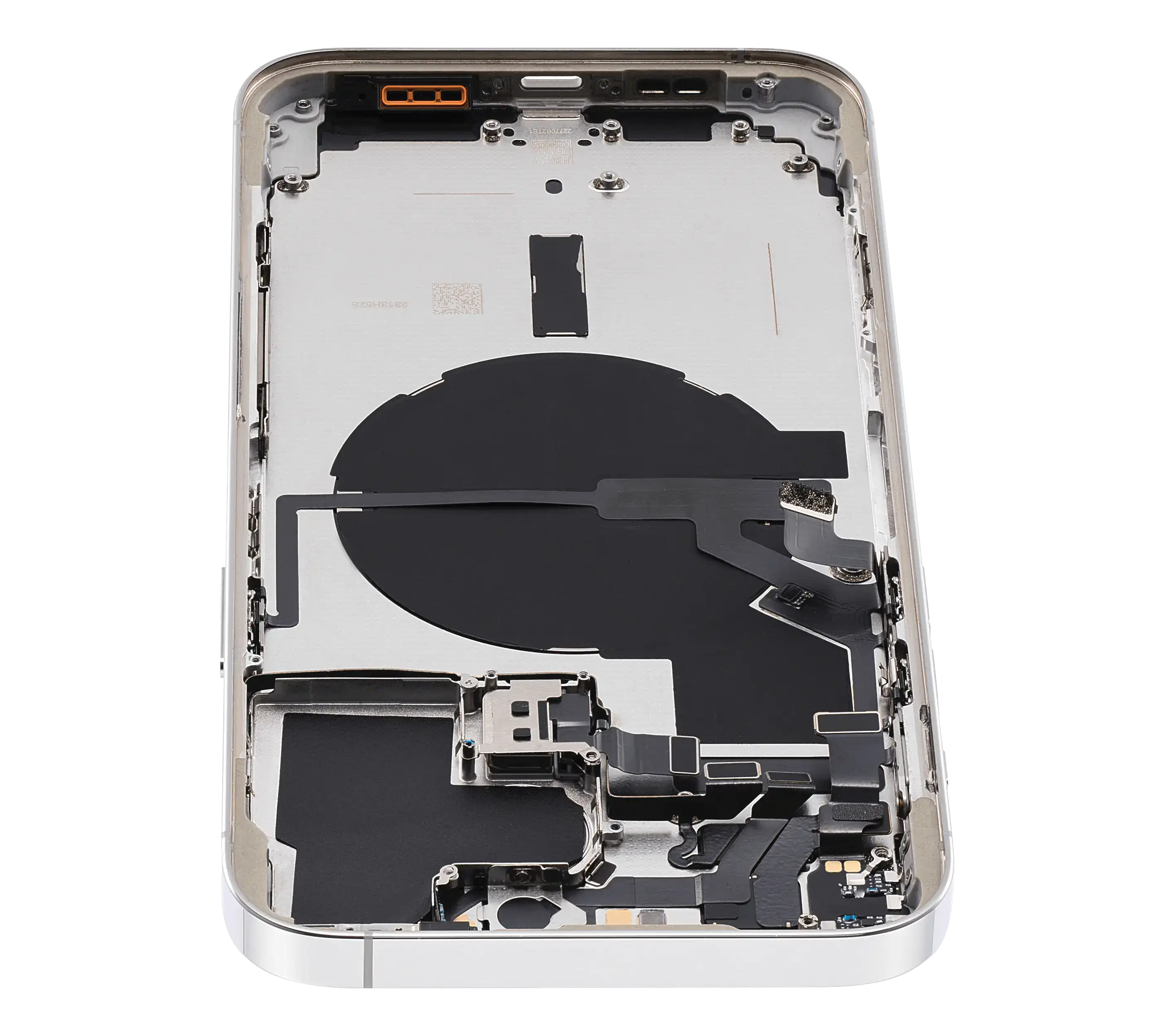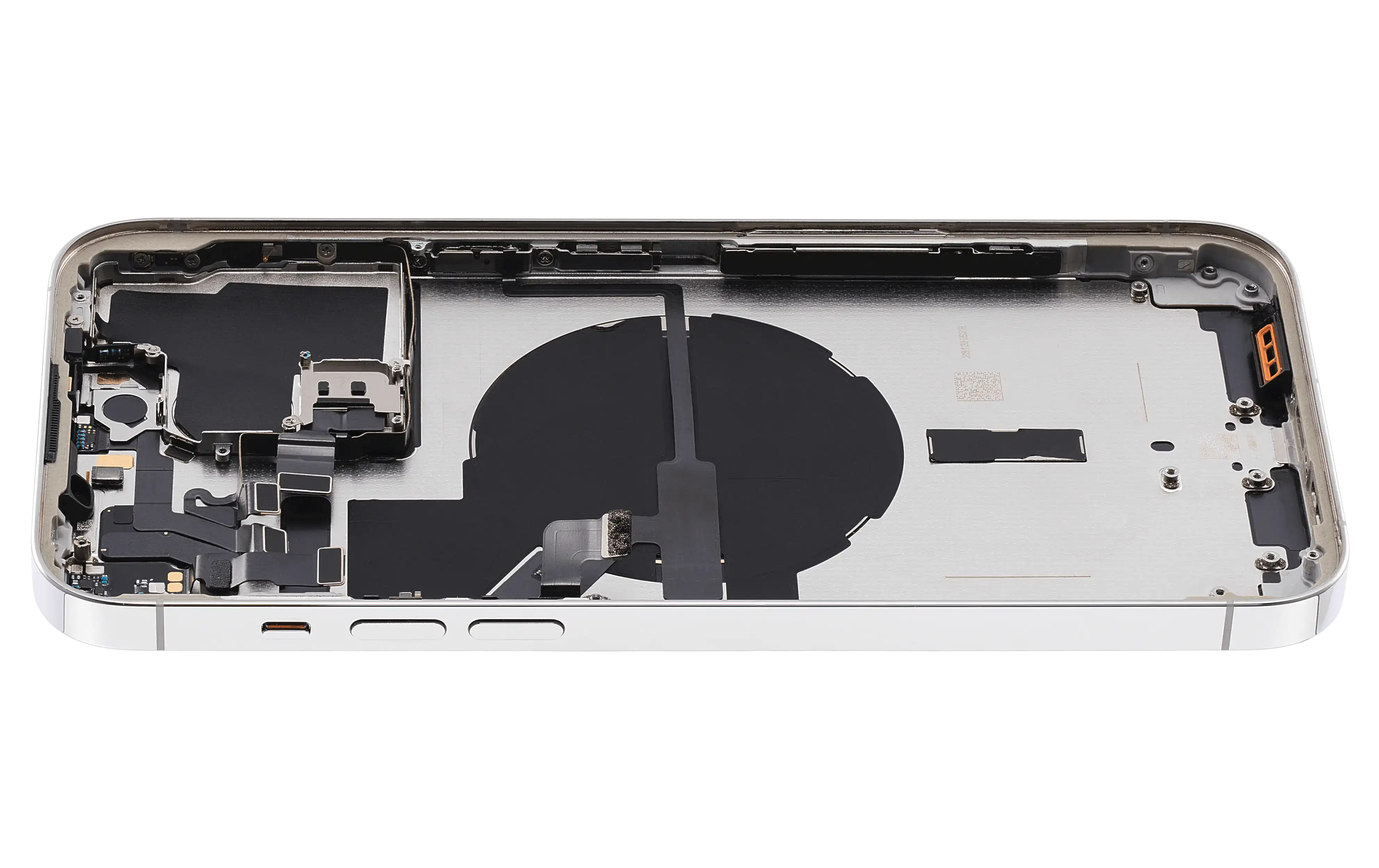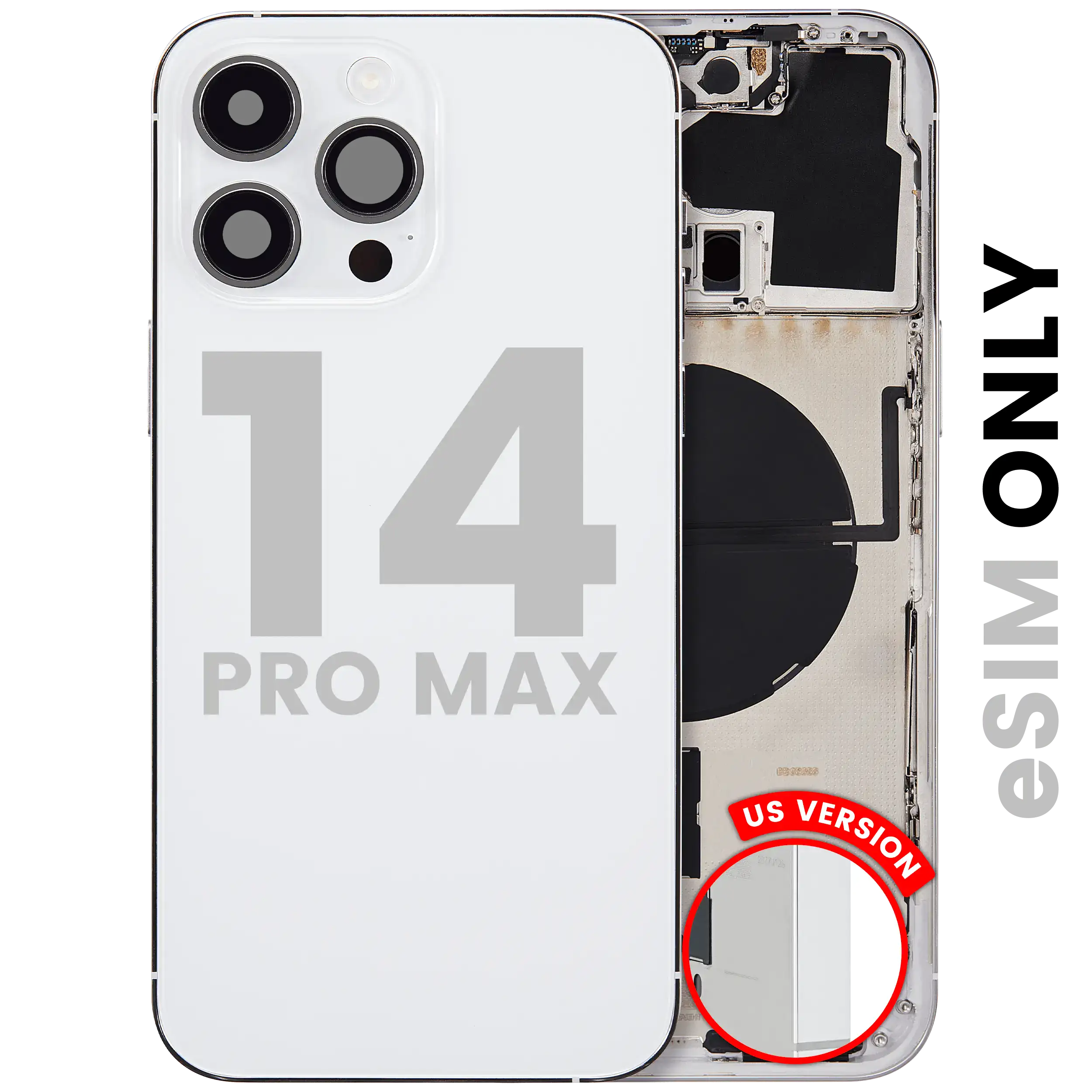 • Superb quality Back Housing W/ Small Components Pre-Installed for iPhone 14 Pro Max (U.S Version) (Used OEM Pull: Grade B) (Silver).