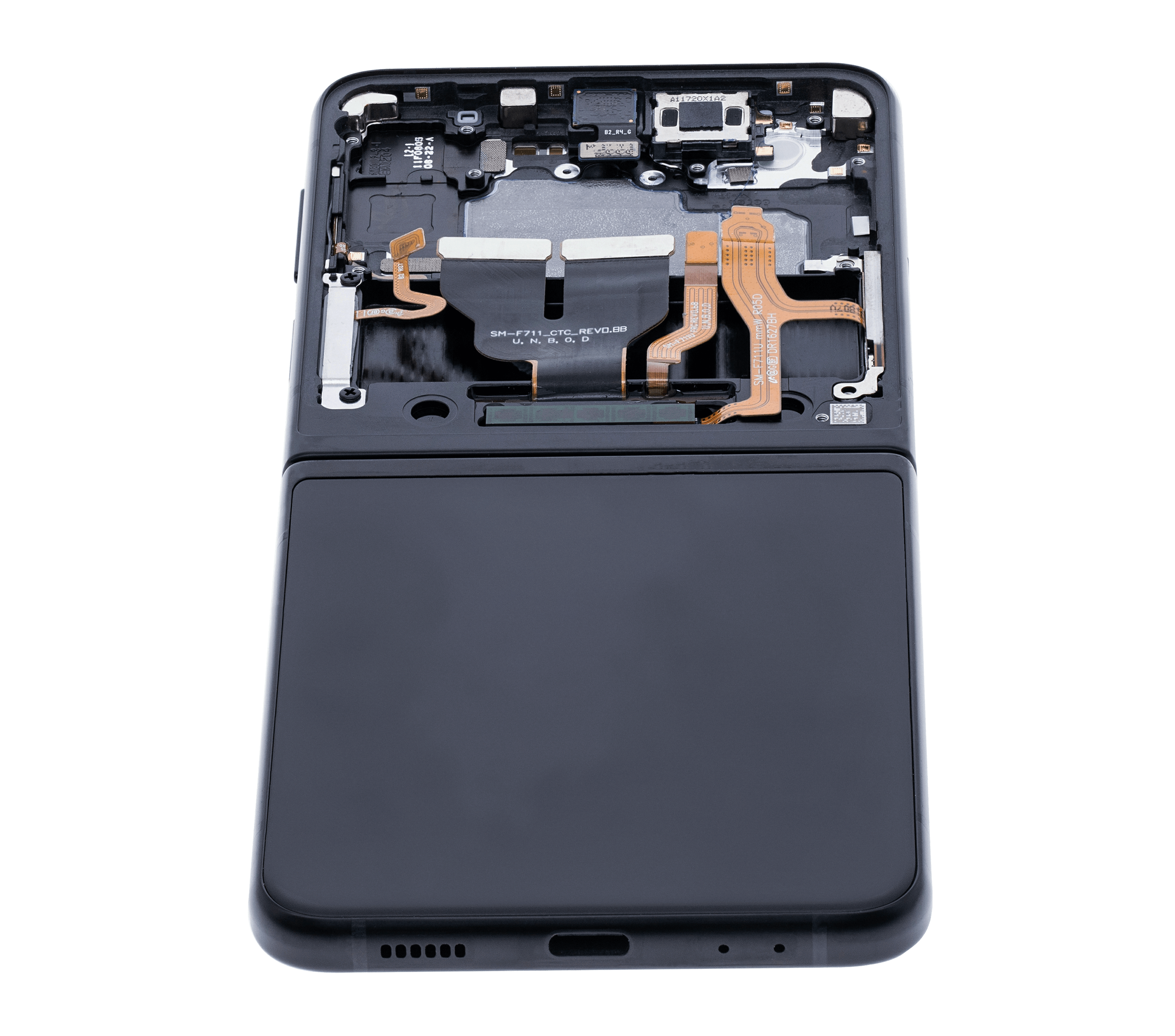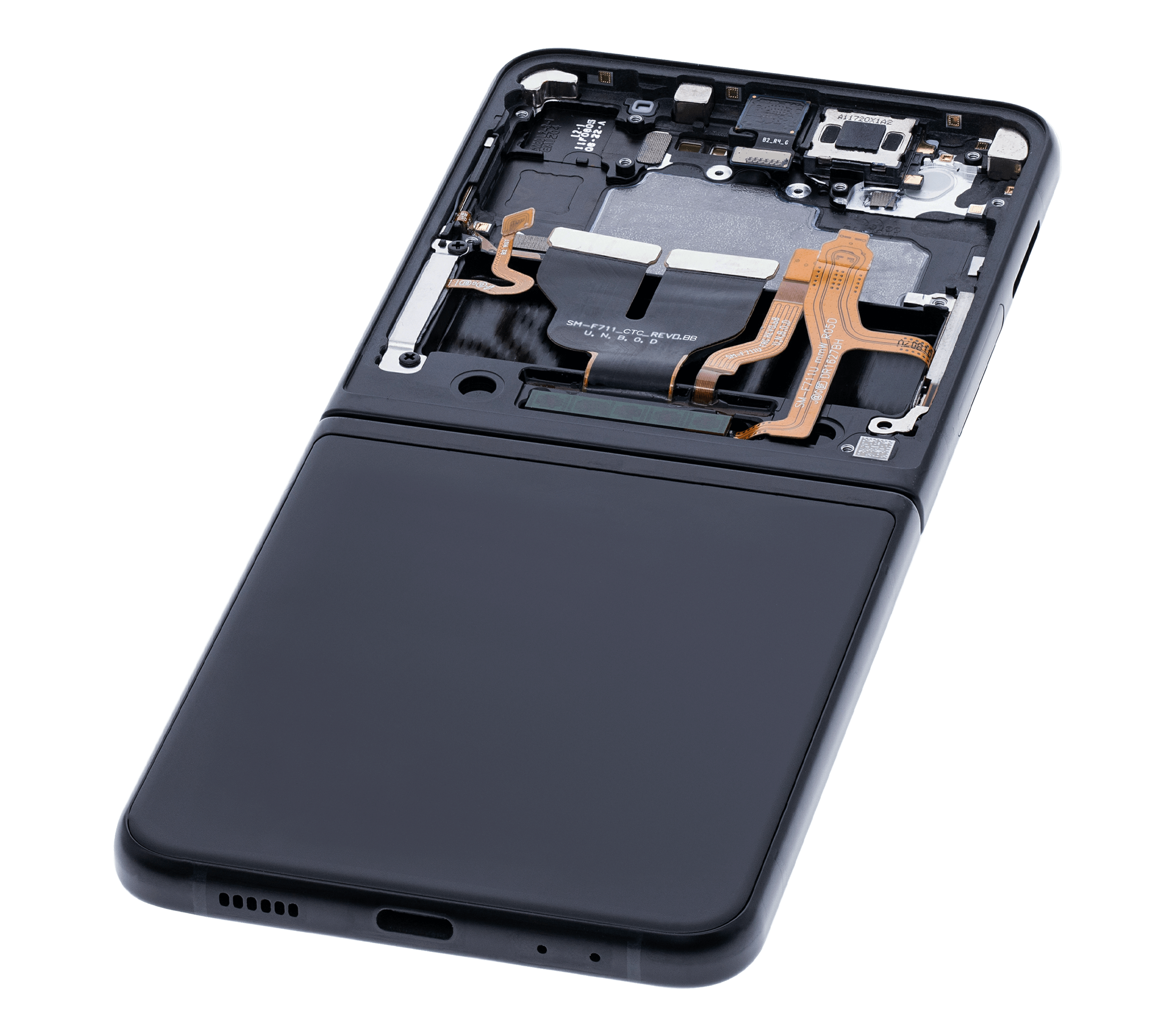 Inner OLED Assembly With Frame For Samsung Galaxy Z Flip 3 5G (US & International) (Used OEM Pull: Grade B/C) (Phantom Black)