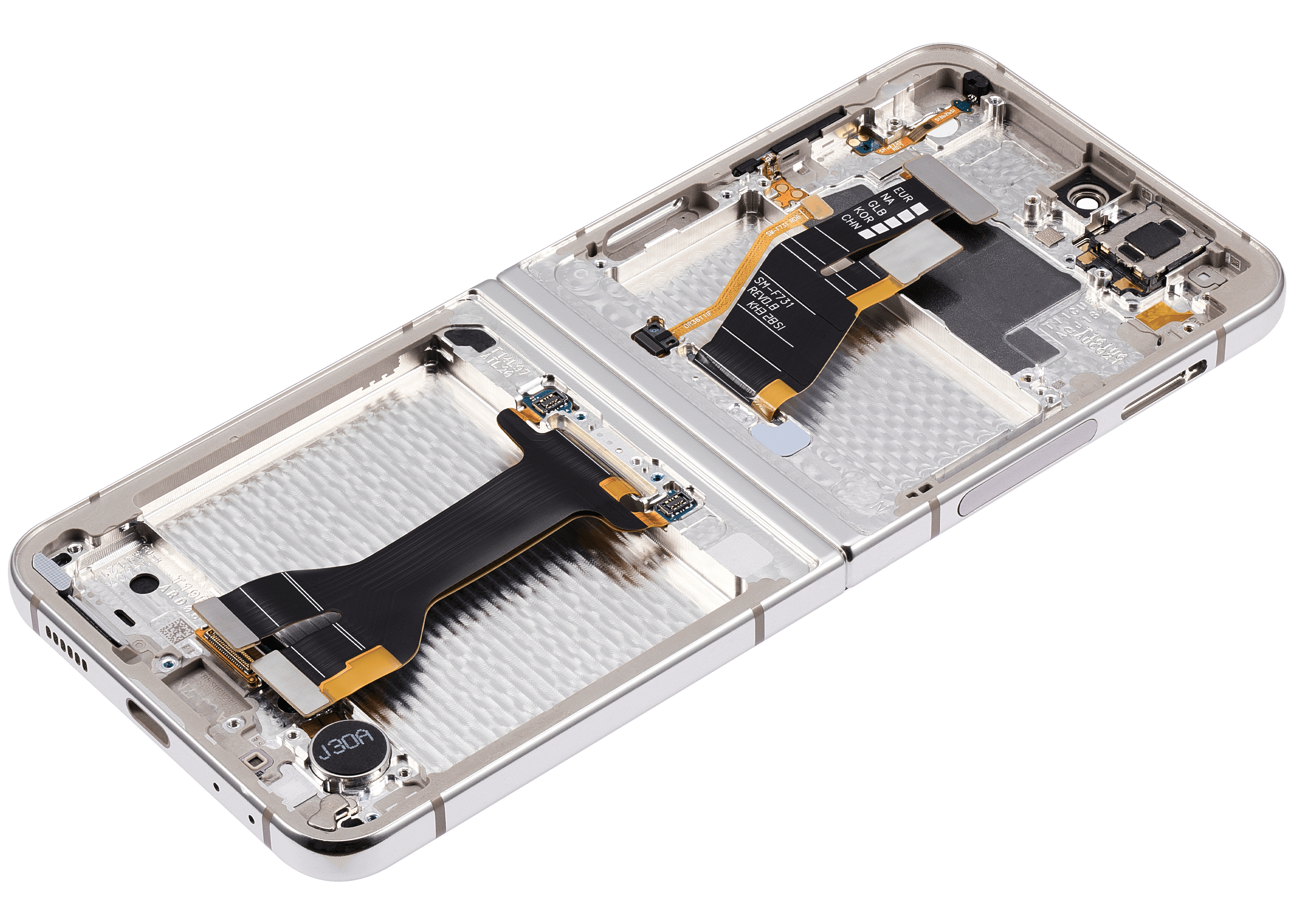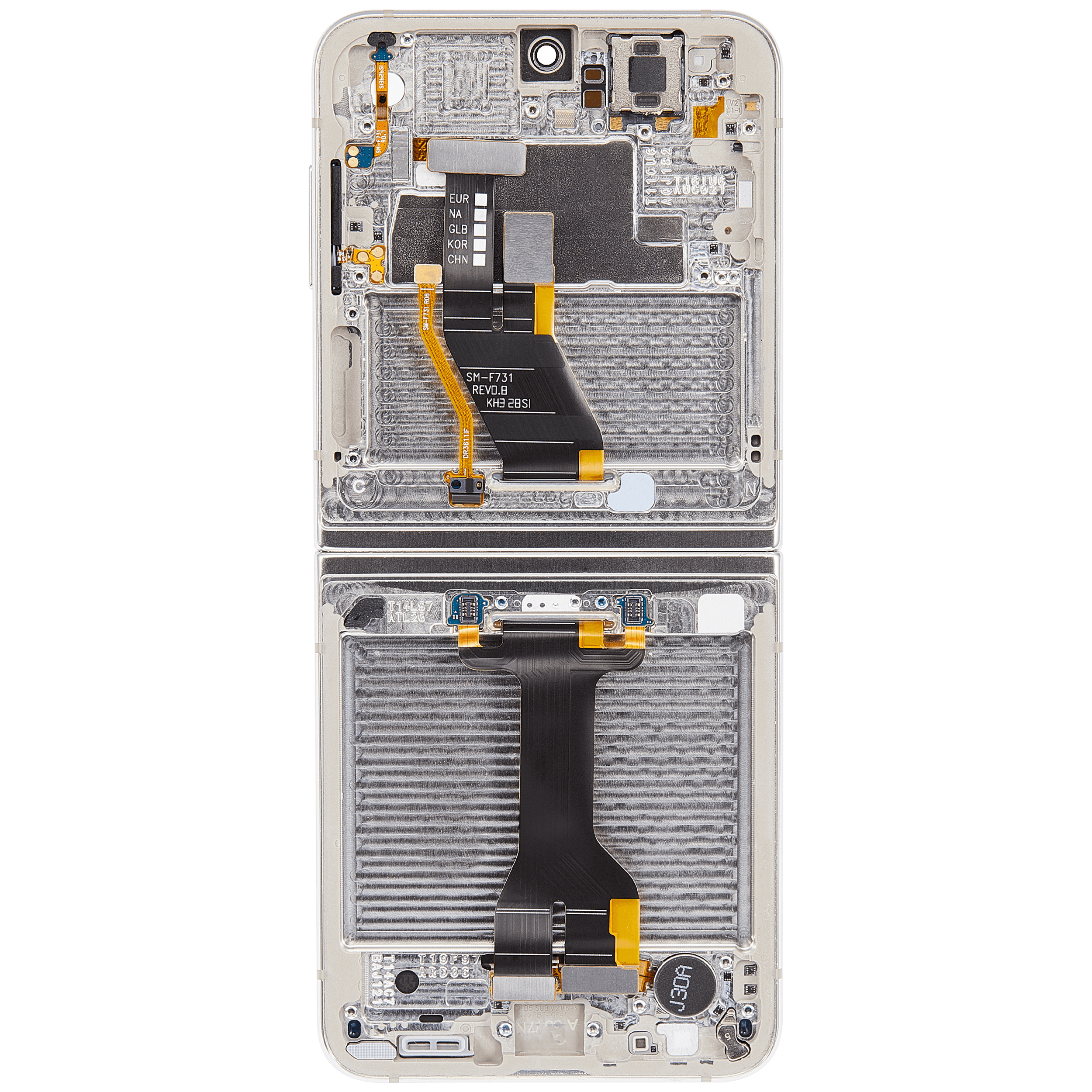 • High quality Samsung Galaxy Z Flip 5 5G inner OLED screen replacement with frame (US & International) (Refurbished) (Cream).