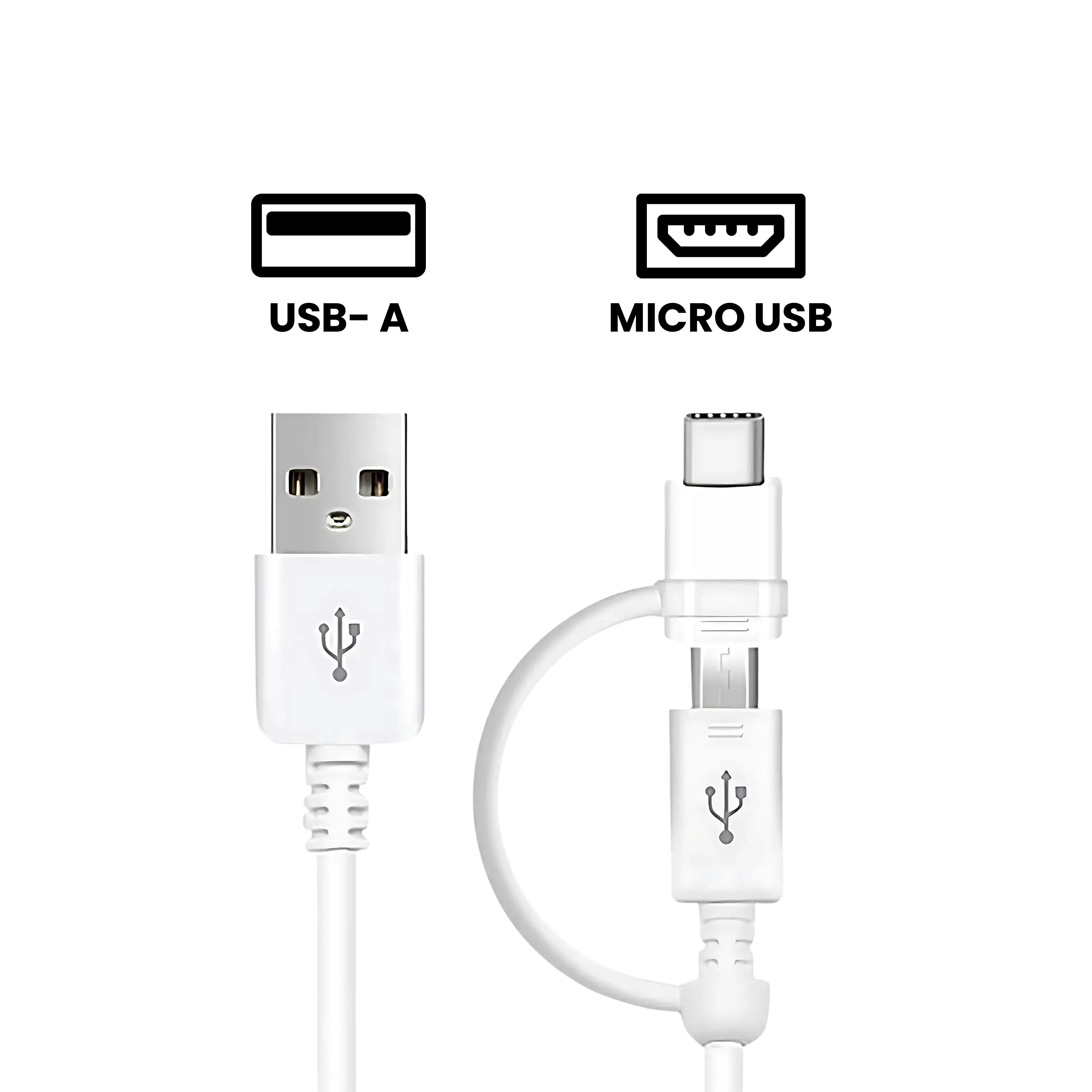 Micro USB To USB Type A Cable With Adaptor (OEM Grade New) (White)