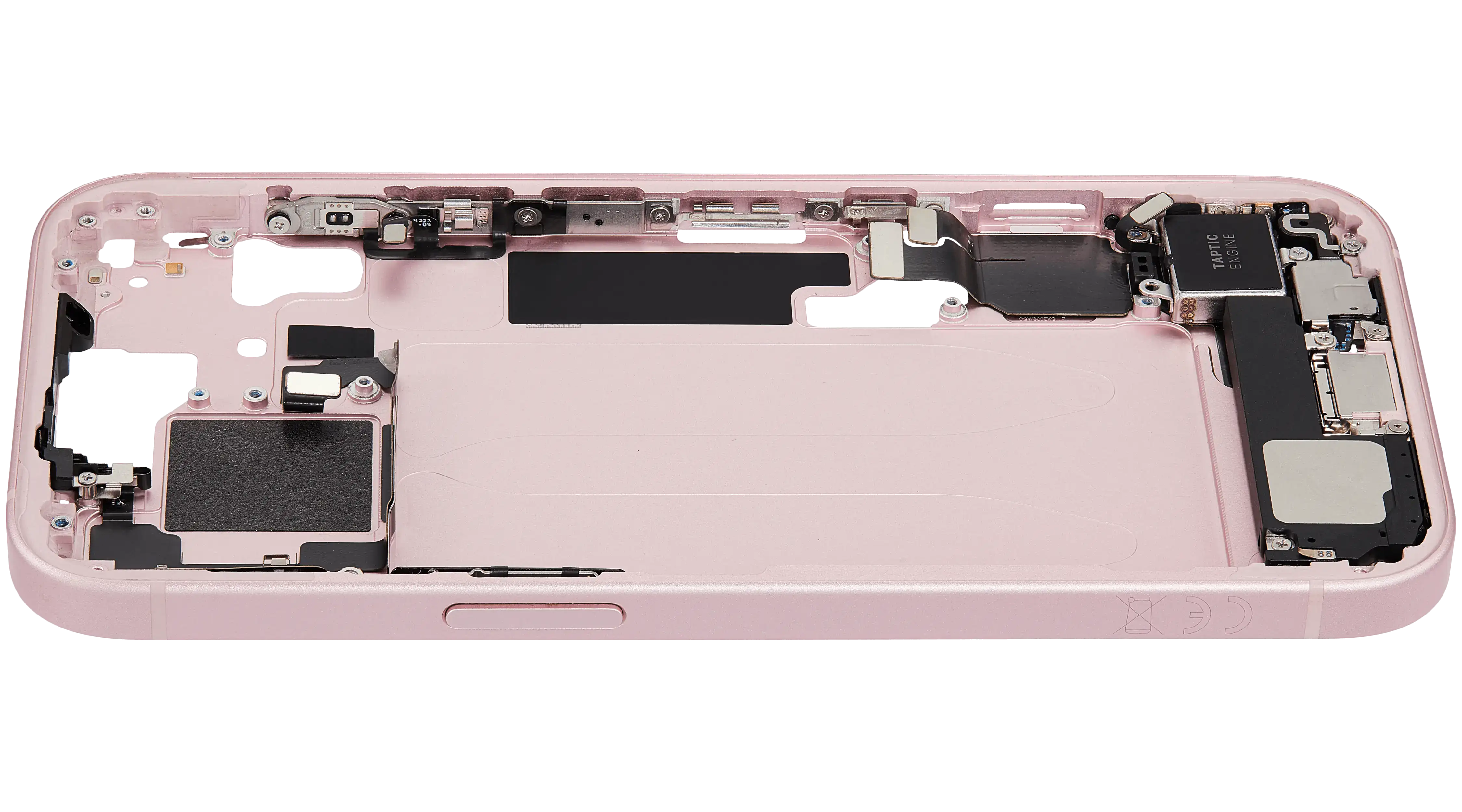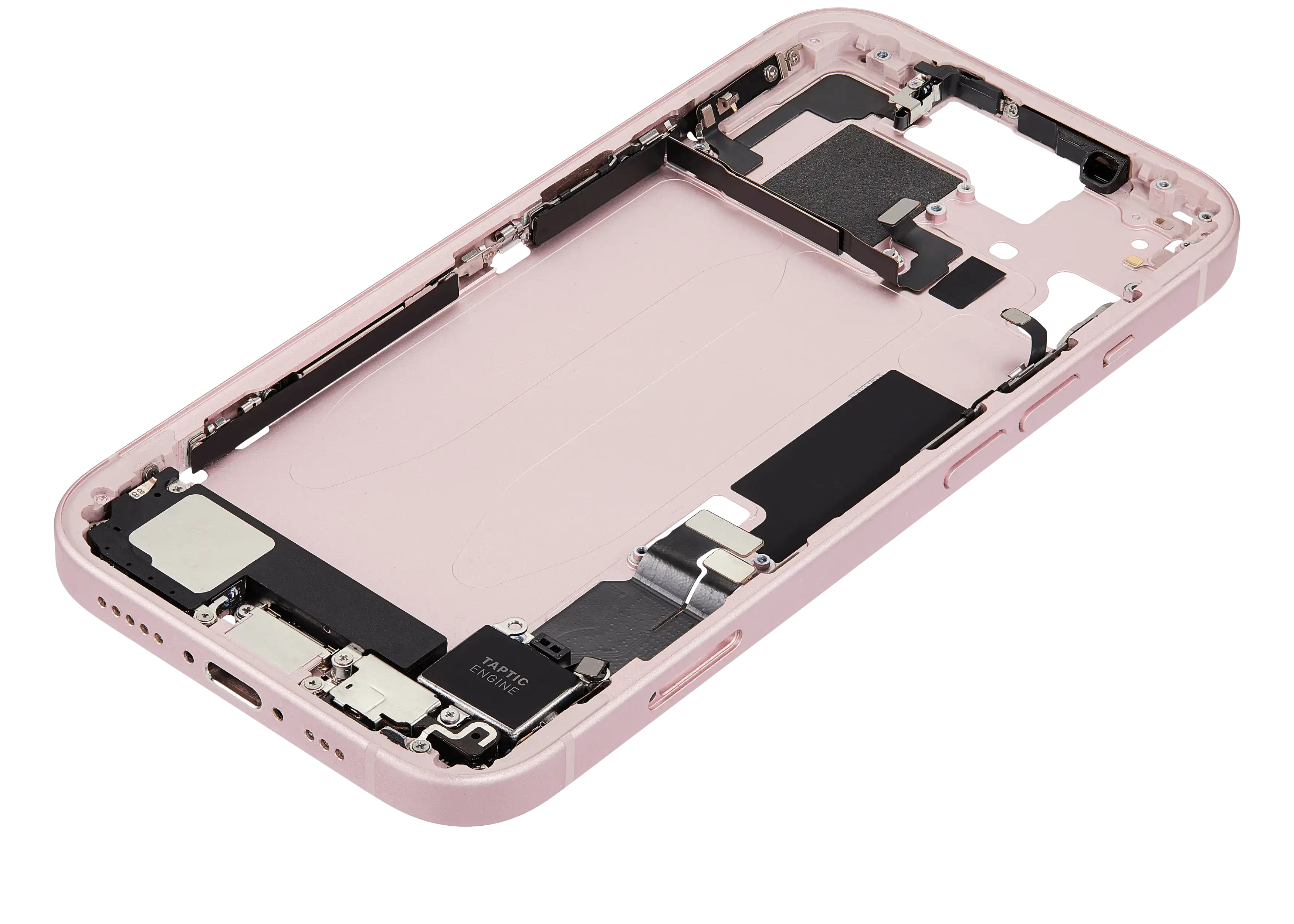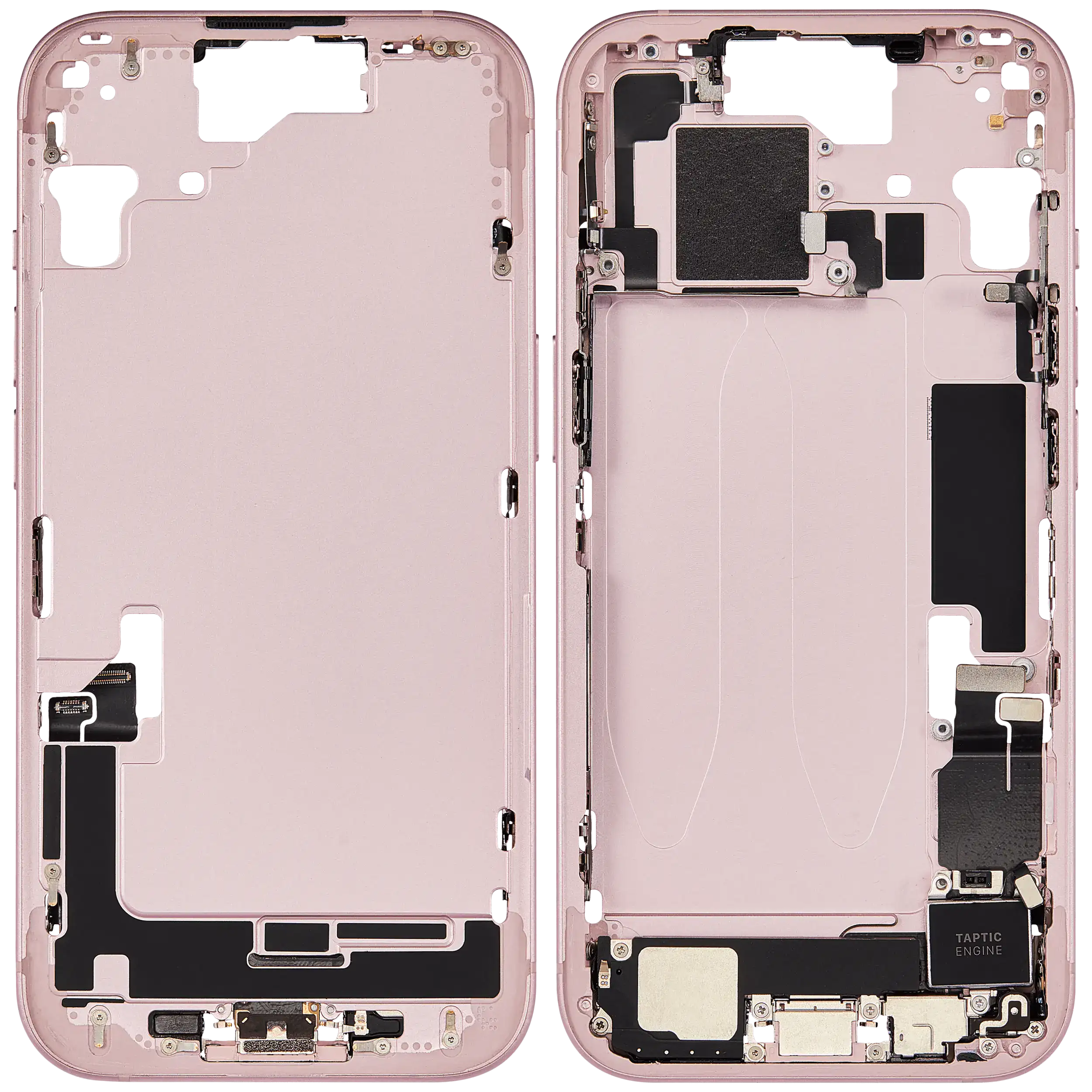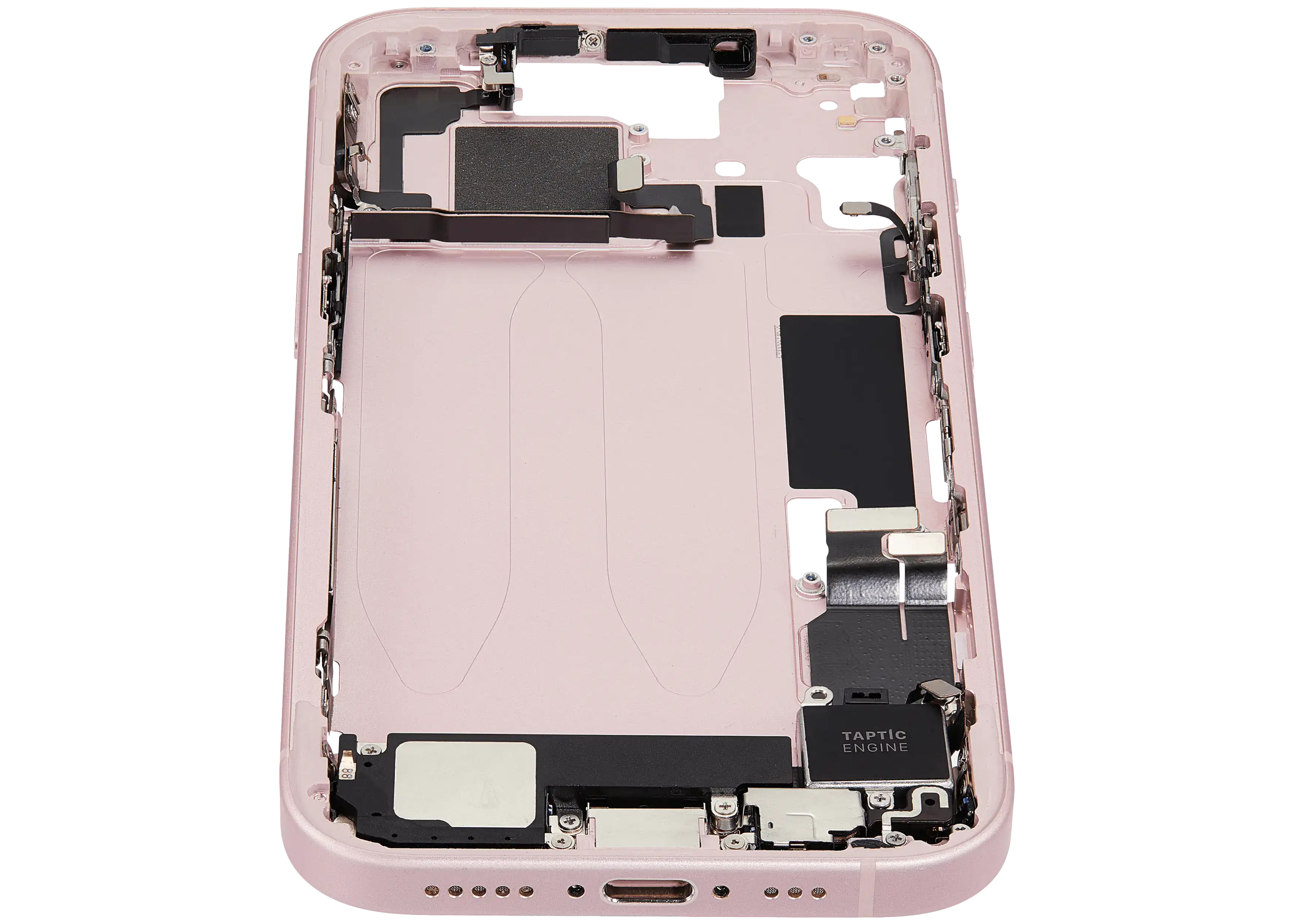 Mid-Frame Housing W/ Charging Port Flex & Small Parts For iPhone 15 (EU / Global Version) (Used OEM Pull: Grade A) (Pink)