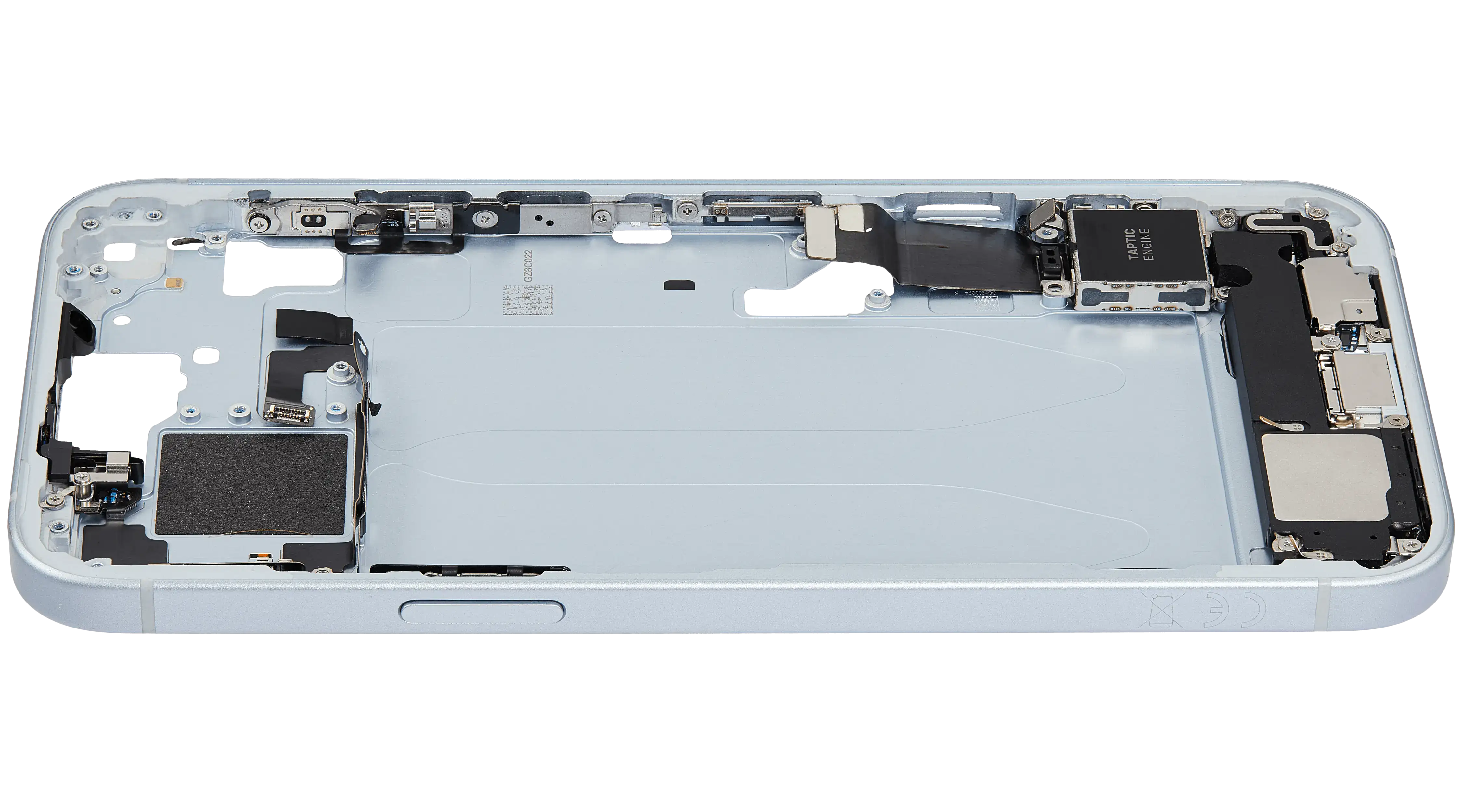 Mid-Frame Housing W/ Charging Port Flex & Small Parts For iPhone 15 Plus (EU / Global Version) (Used OEM Pull: Grade B) (Blue)