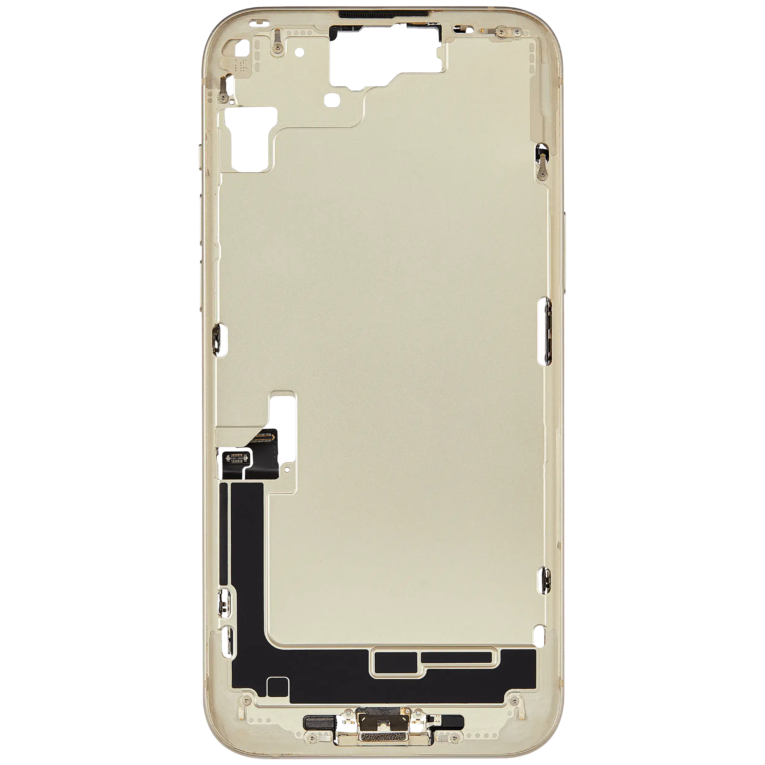 Mid-Frame Housing W/ Charging Port Flex & Small Parts For iPhone 15 Plus (EU / Global Version) (Used OEM Pull: Grade B) (Yellow)