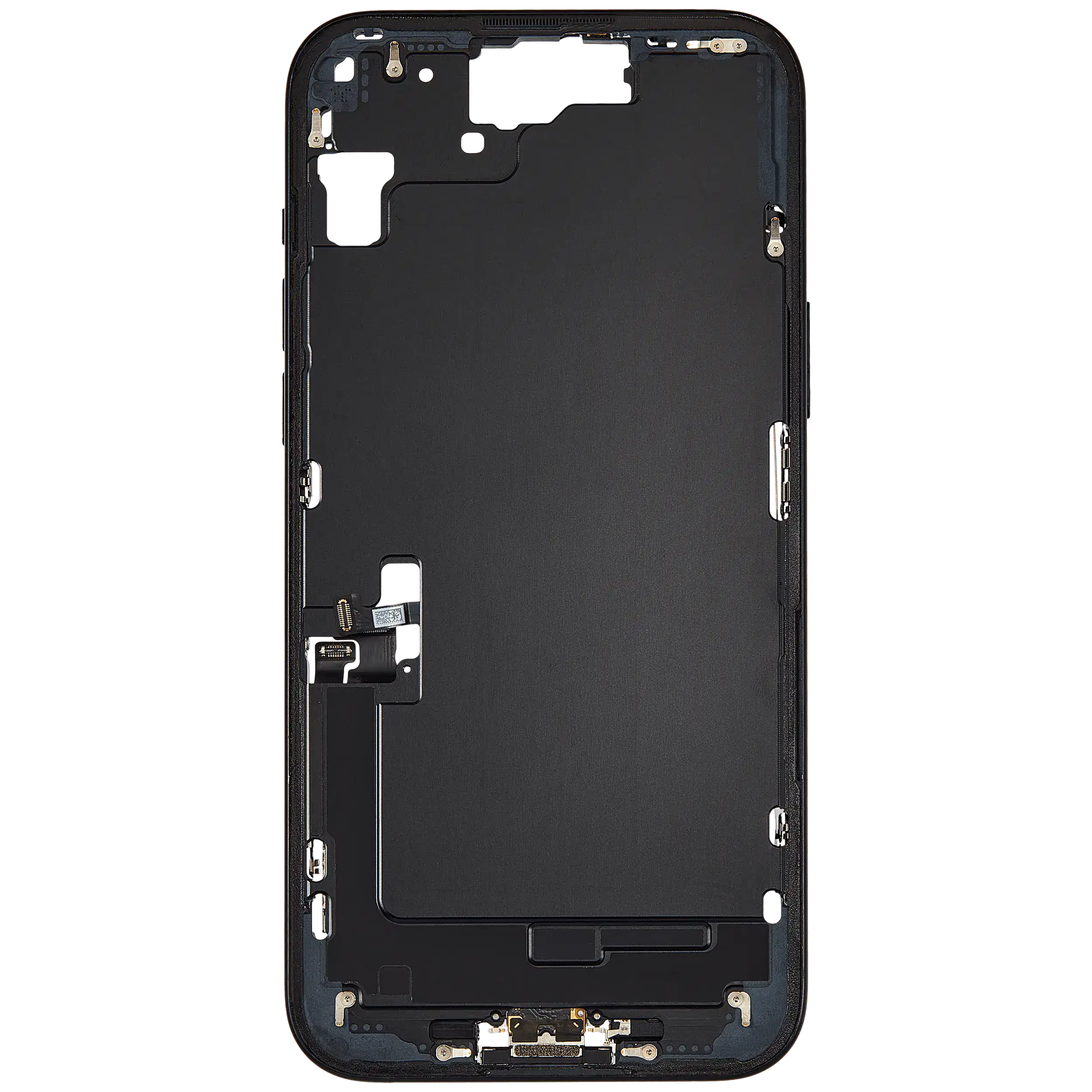Mid-Frame Housing W/ Charging Port Flex & Small Parts For iPhone 15 Plus (US Version) (Used OEM Pull: Grade B) (Black)
