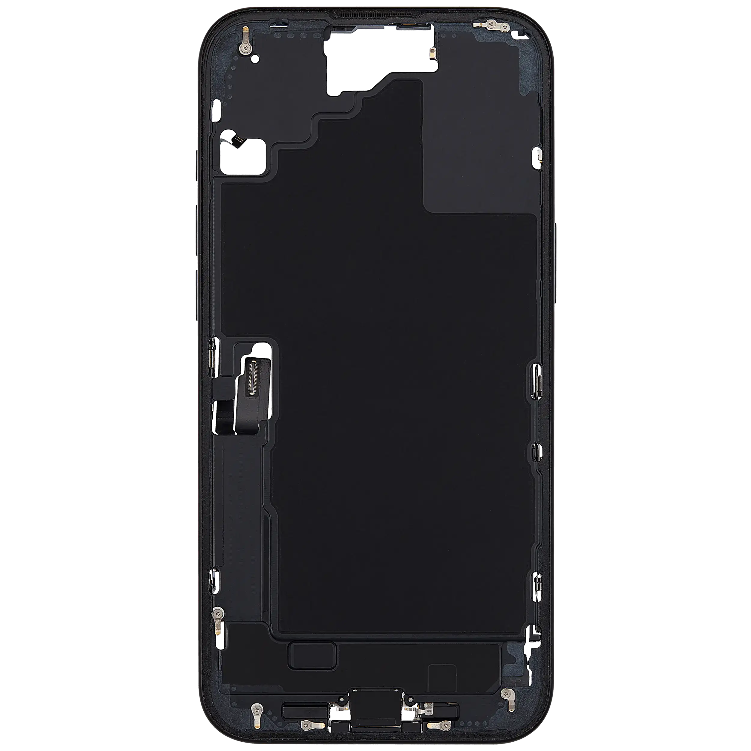 Mid-Frame Housing W/ Charging Port Flex & Small Parts For iPhone 16 Plus (US Version) (Used OEM Pull: Grade B) (Black)