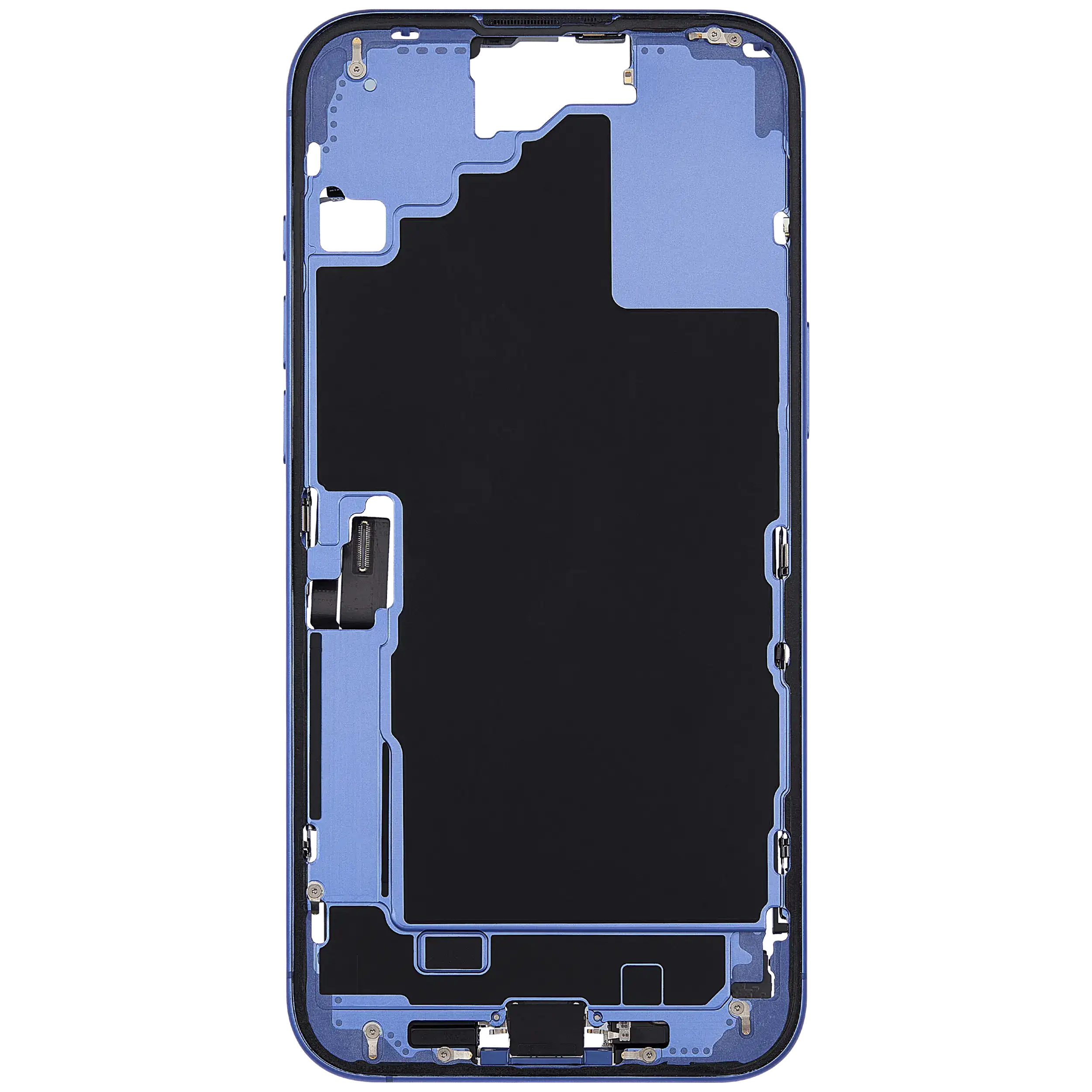 Mid-Frame Housing W/ Charging Port Flex & Small Parts For iPhone 16 Plus (US Version) (Used OEM Pull: Grade C) (Ultramarine)