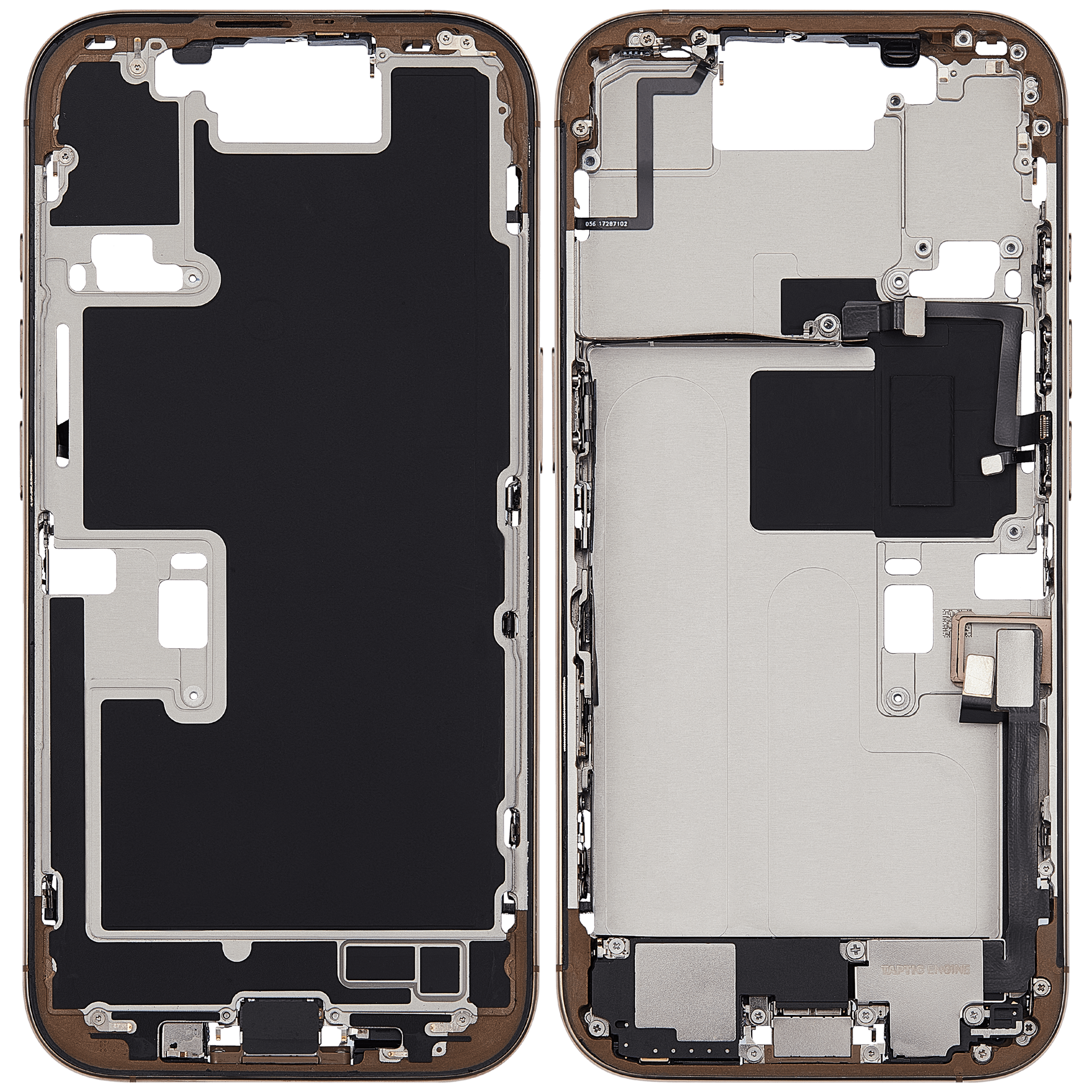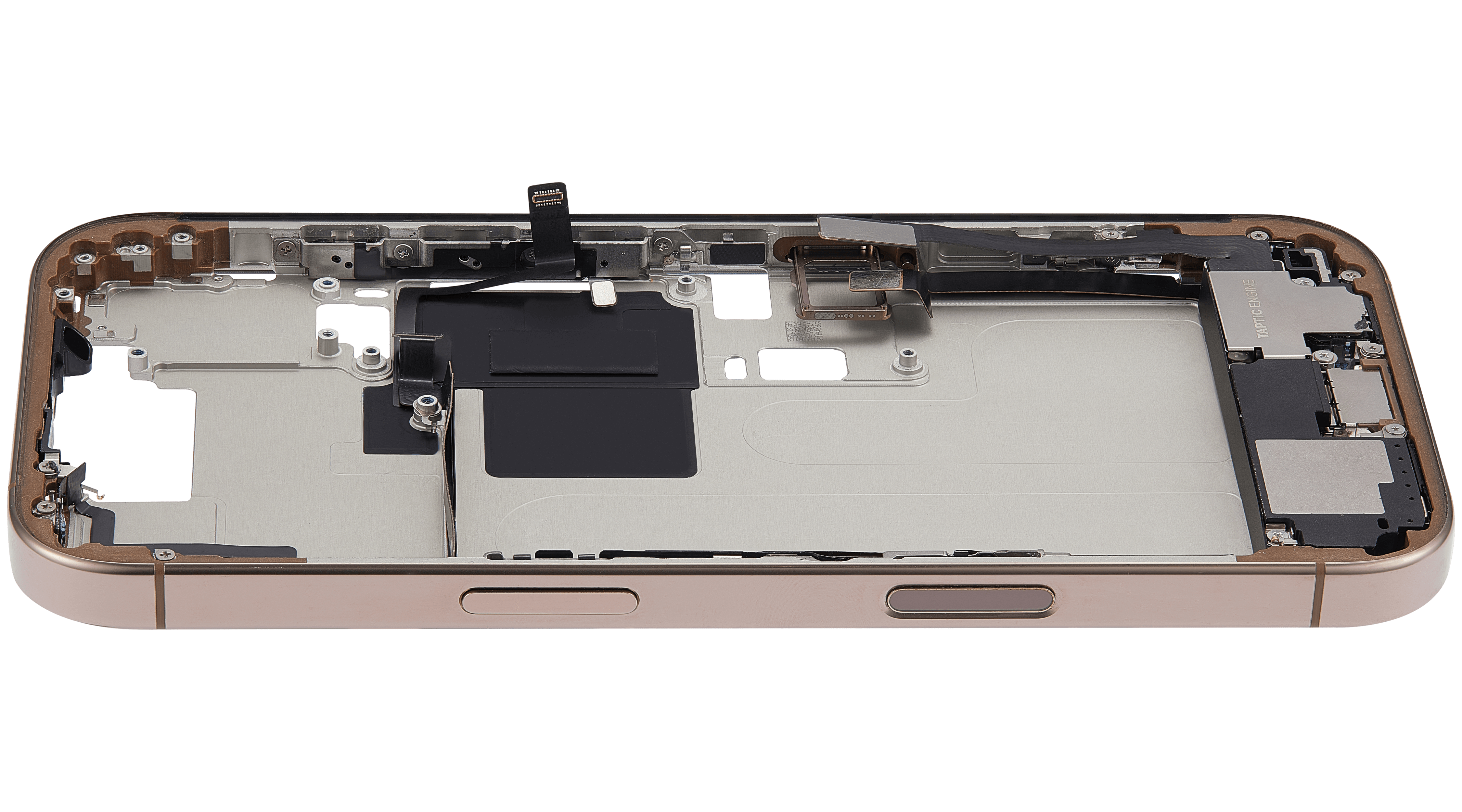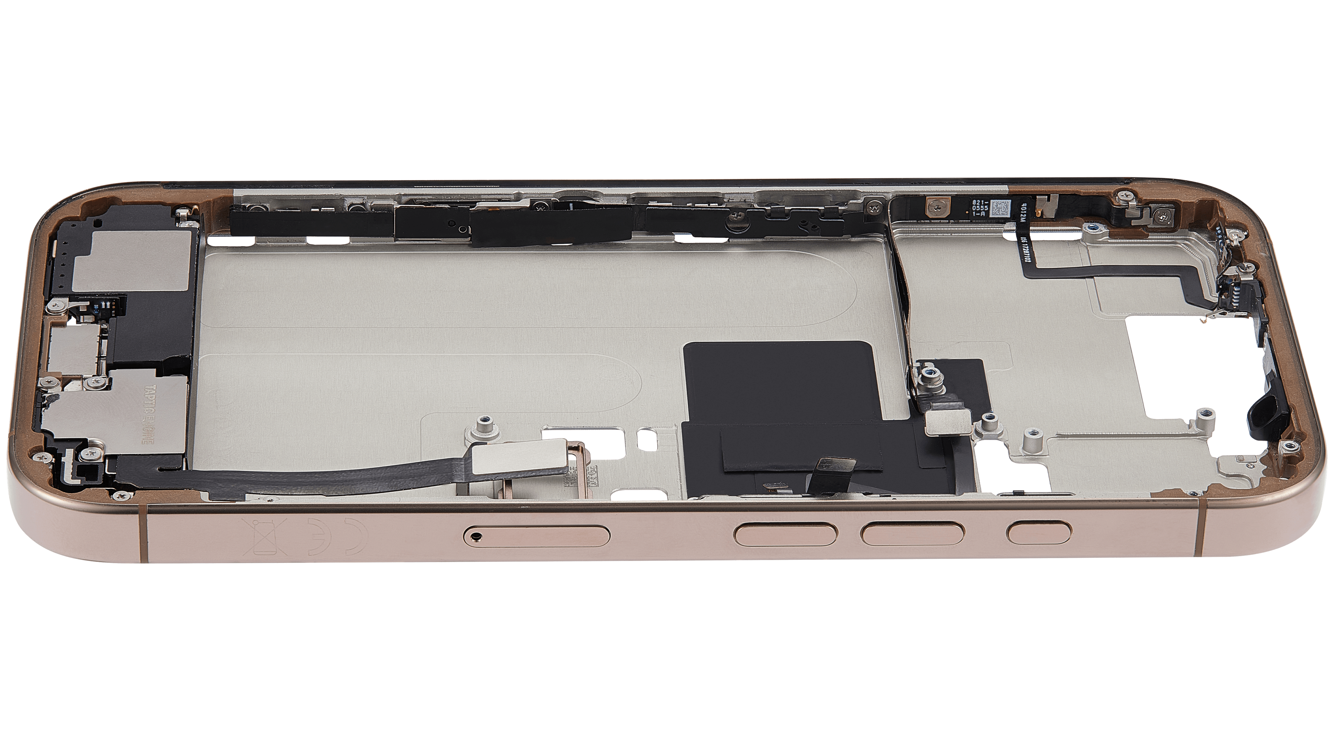 Mid-Frame Housing W/ Charging Port Flex & Small Parts For iPhone 16 Pro (EU / Global Version) (Used OEM Pull: Grade C) (Natural Titanium)