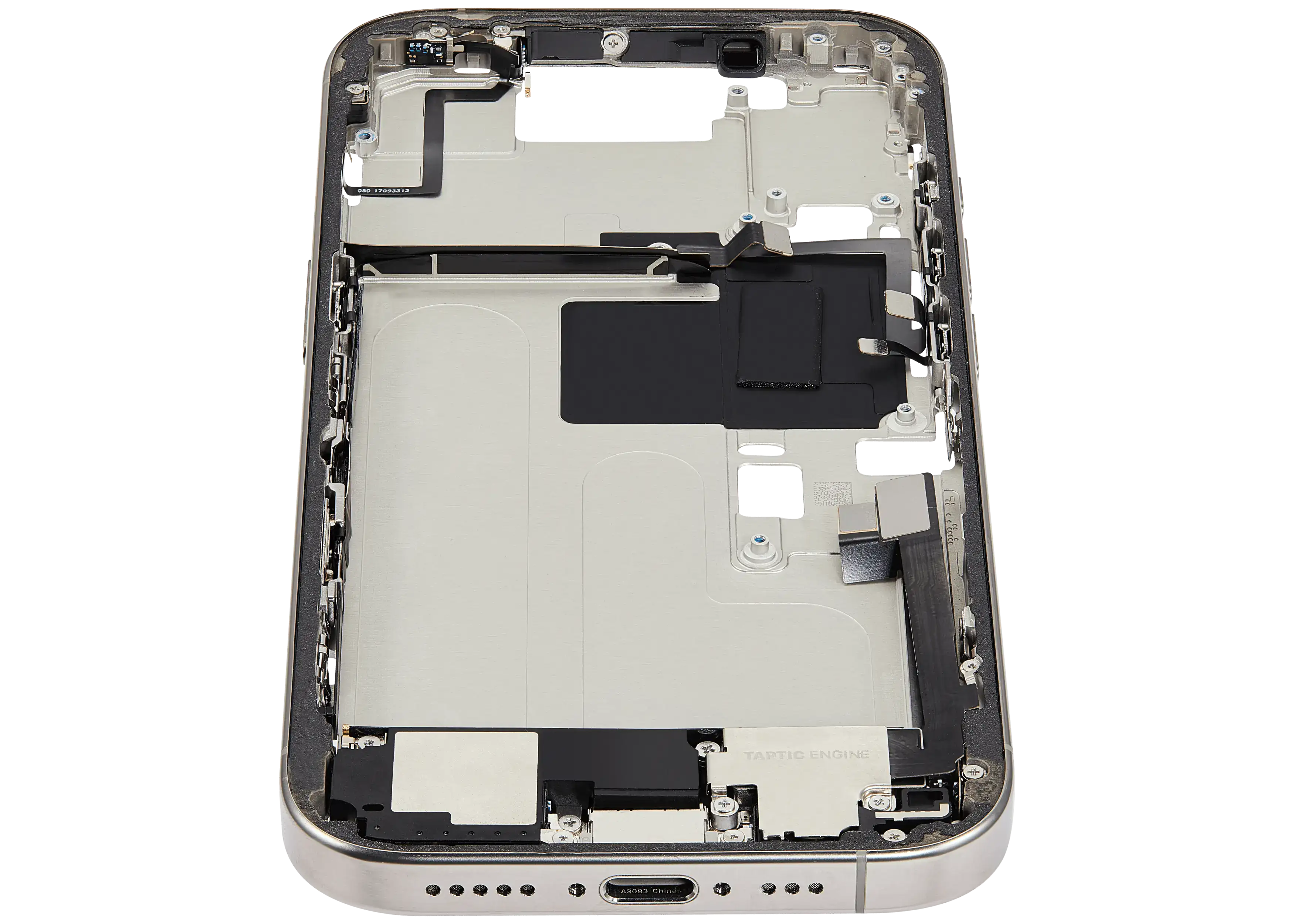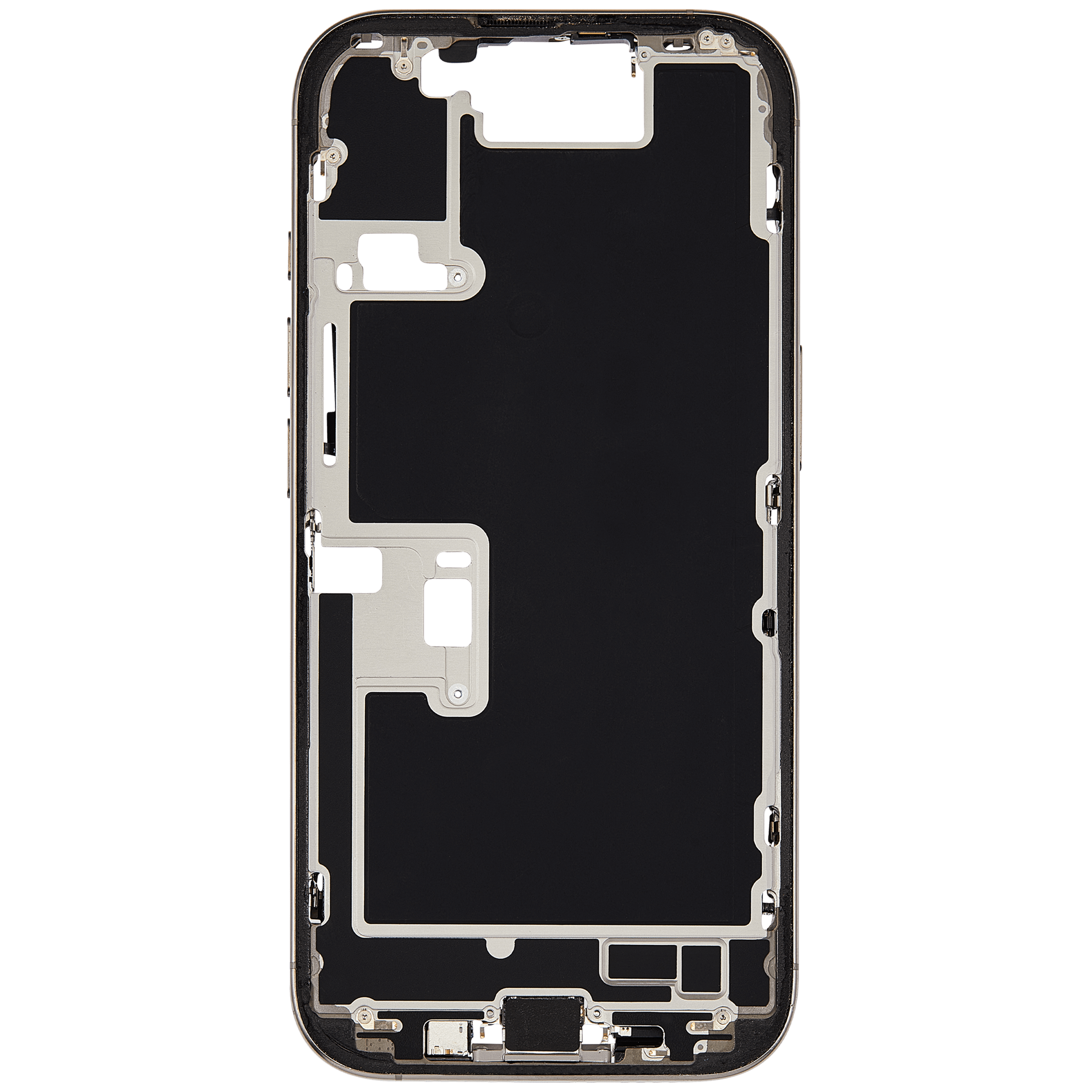 Mid-Frame Housing W/ Charging Port Flex & Small Parts For iPhone 16 Pro (US Version) (Used OEM Pull: Grade A) (Natural Titanium)