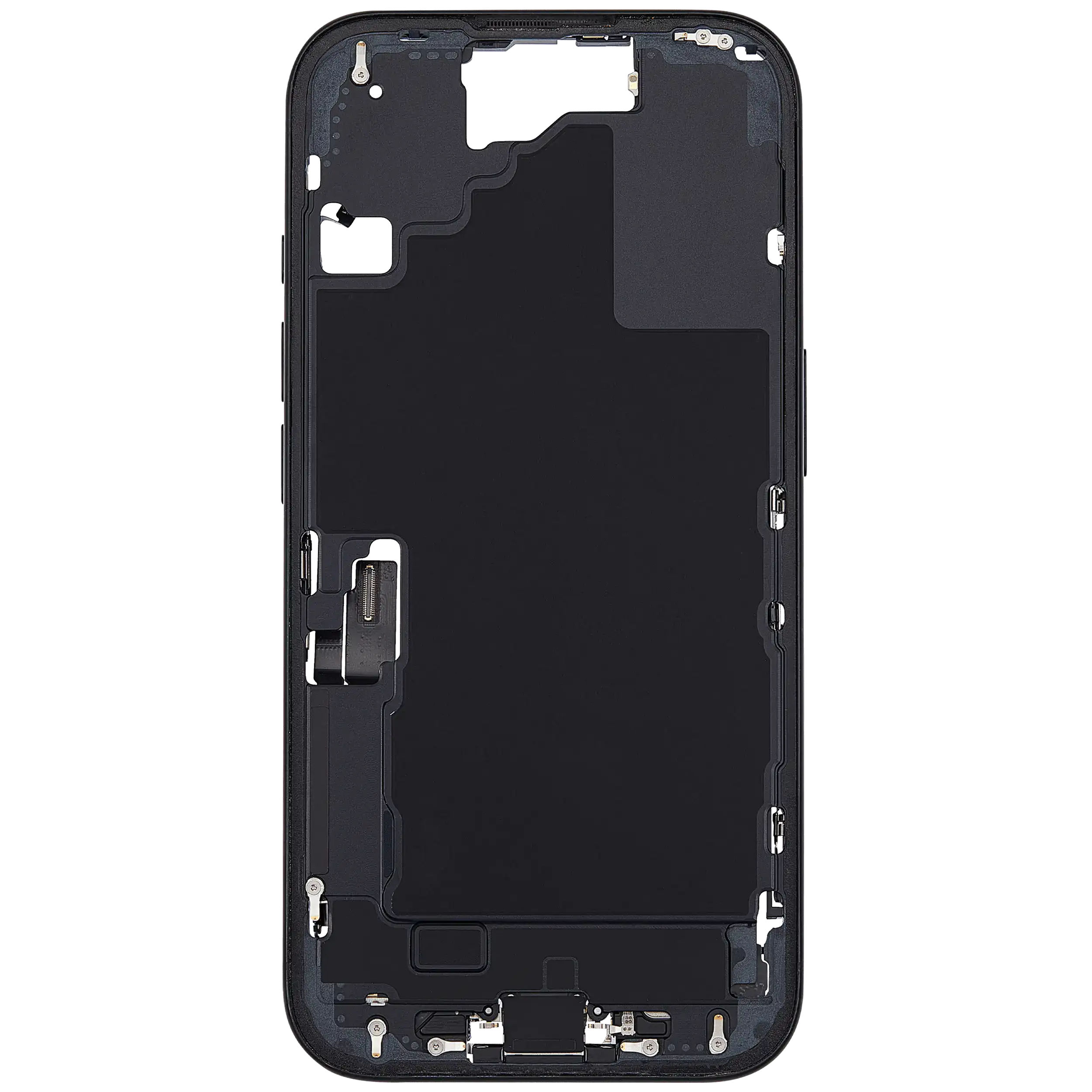 Mid-Frame Housing W/ Charging Port Flex & Small Parts For iPhone 16 (US Version) (Used OEM Pull: Grade C) (Black)