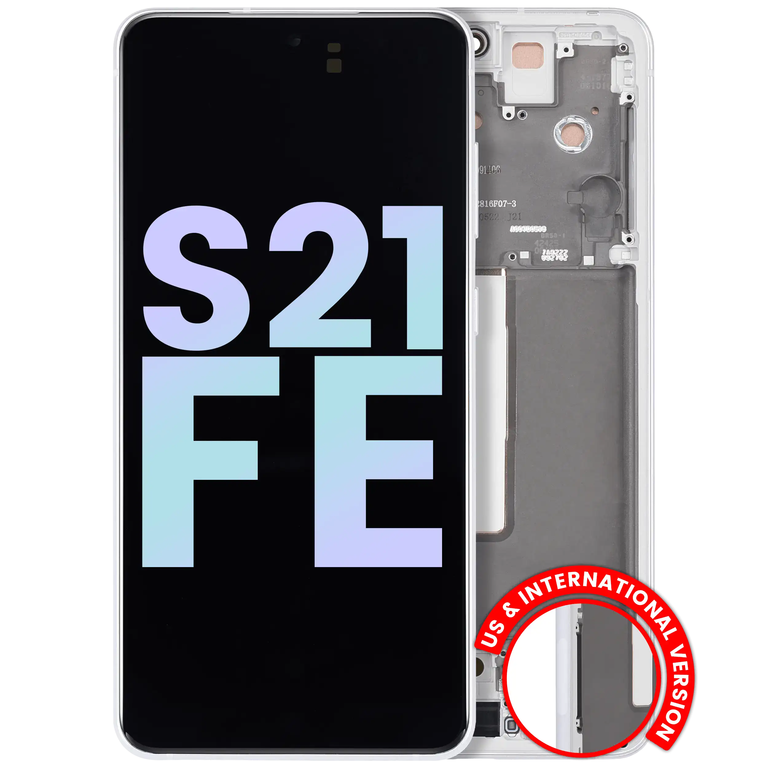 • High quality, Samsung Galaxy S21 FE 5G OLED Screen Replacement with frame (US & International Version) (Service Pack) (White).