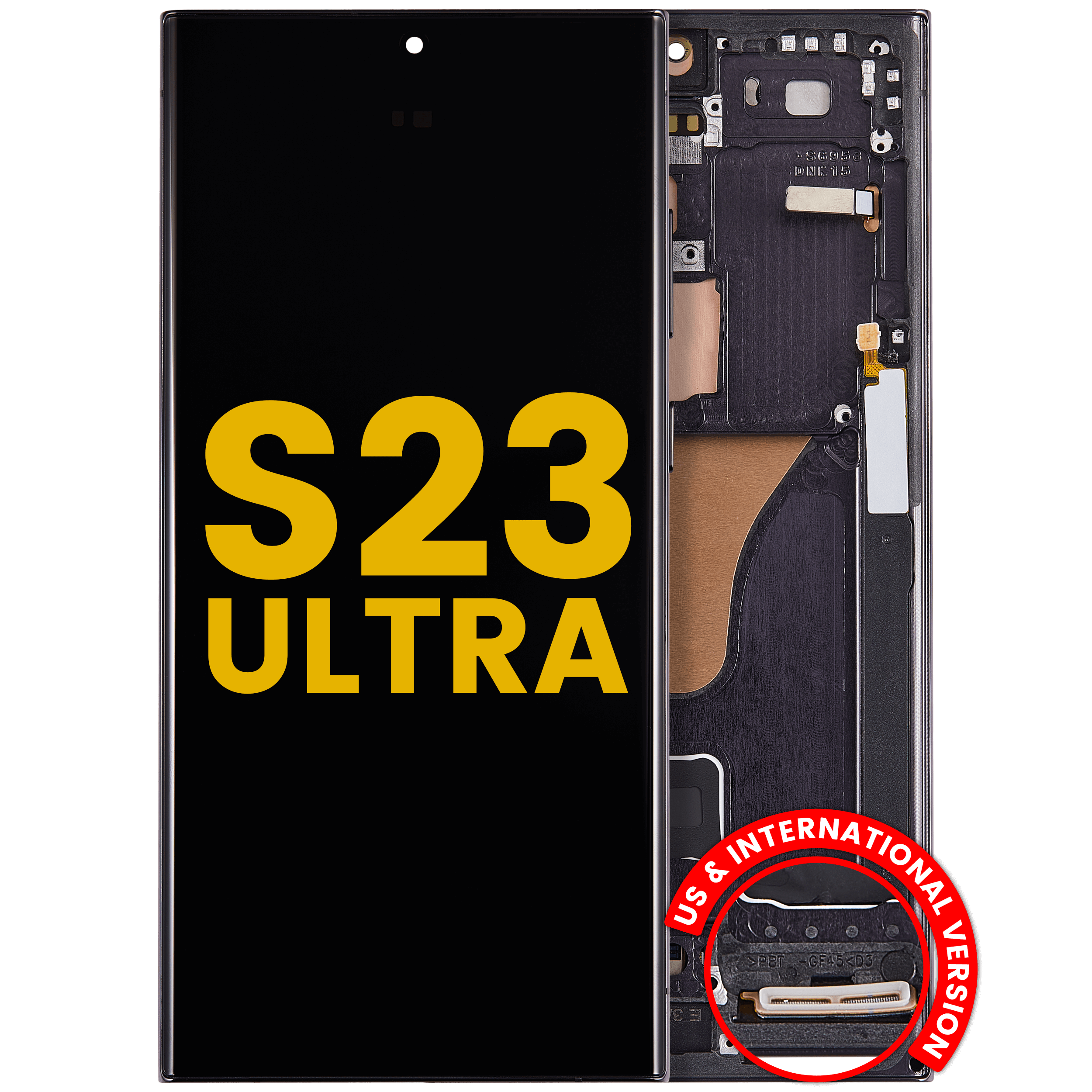 • Best quality Samsung Galaxy S23 Ultra OLED screen replacement with frame (US & International) (Refurbished) (Phantom Black).
