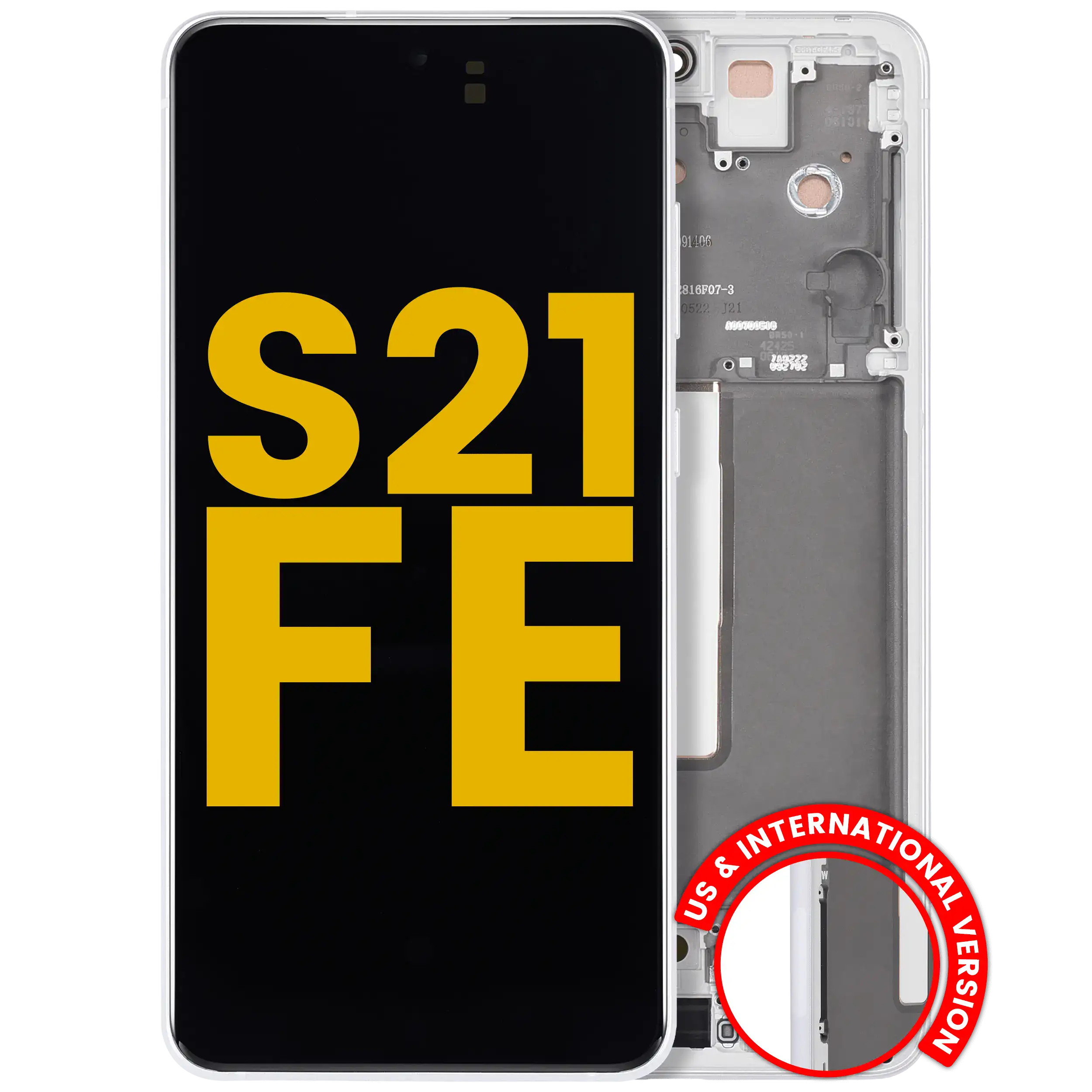 • High quality, Samsung Galaxy S21 FE 5G OLED Screen Replacement with frame (US & International) (Refurbished) (White).