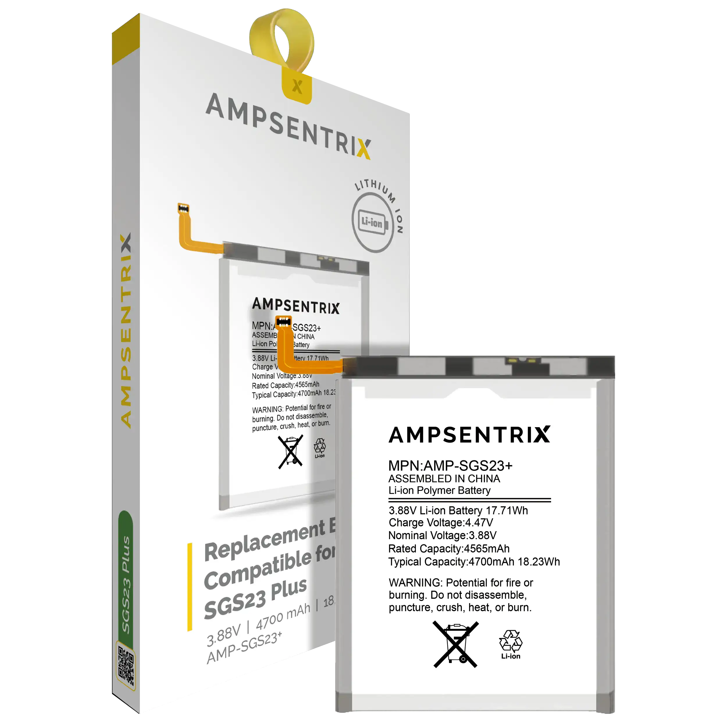 Replacement Battery Compatible For Samsung Galaxy S23 Plus (AmpSentrix Pro)
